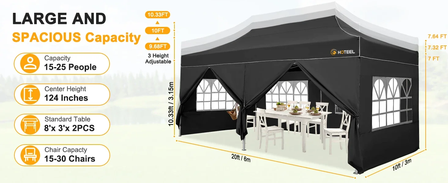 10X20 TENTS FOR PARTIES SPECIFICATION 3 Height Adjustable 118 - 122 - 126 INCH (300 - 310 - 320 CM)