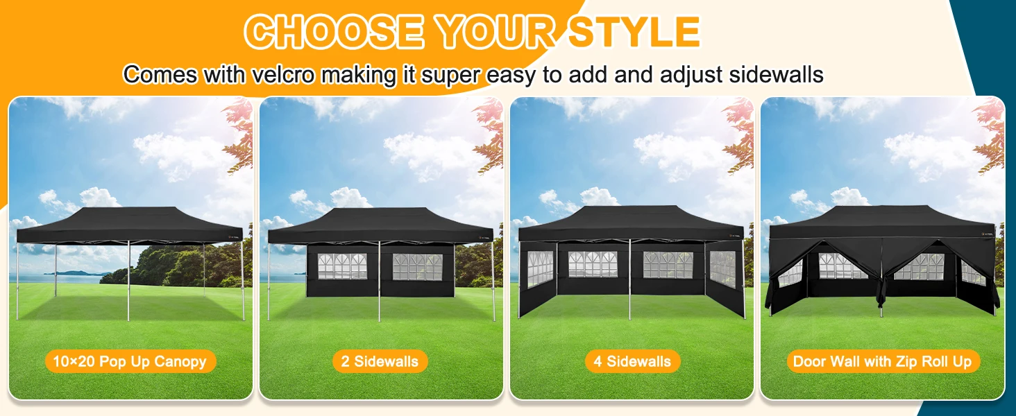 10x20 Heavy Duty Pop up Canopy Tent with Sidewalls for Outdoor Parties Events Wedding Commercial Use with Roller