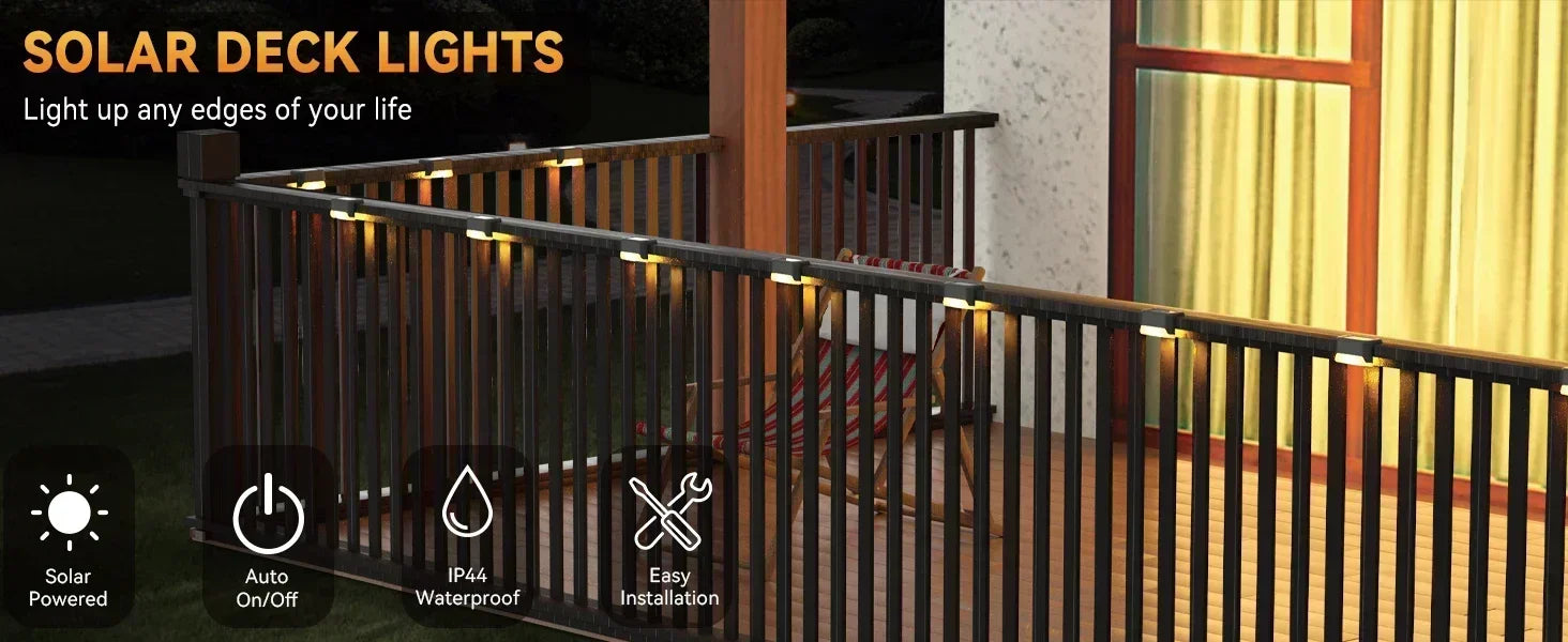 【Easy Installation】The outdoor solar lights can be installed in anywhere that can be fixed with screws. The size of solar fence lights are suit for the deck, no worry about tripping.