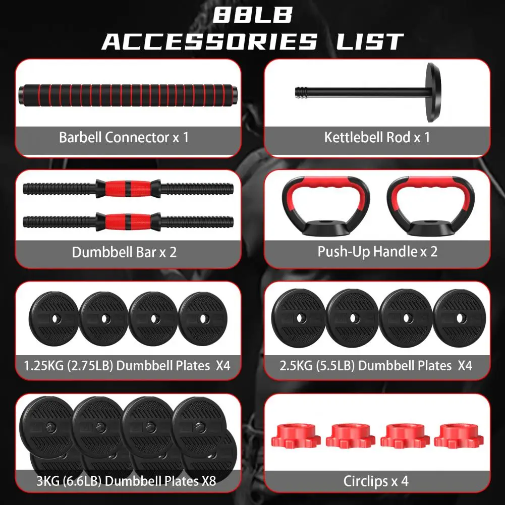 Adjustable Weight for Progressive Training: It is great for diverse exercises and progressive training, ensuring your fitness journey evolves. Cater to your fitness level with our adjustable weights, dumbbell: 5-44lbs, barbell: 5-88lbs, kettlebell: 2.5-26lbs.