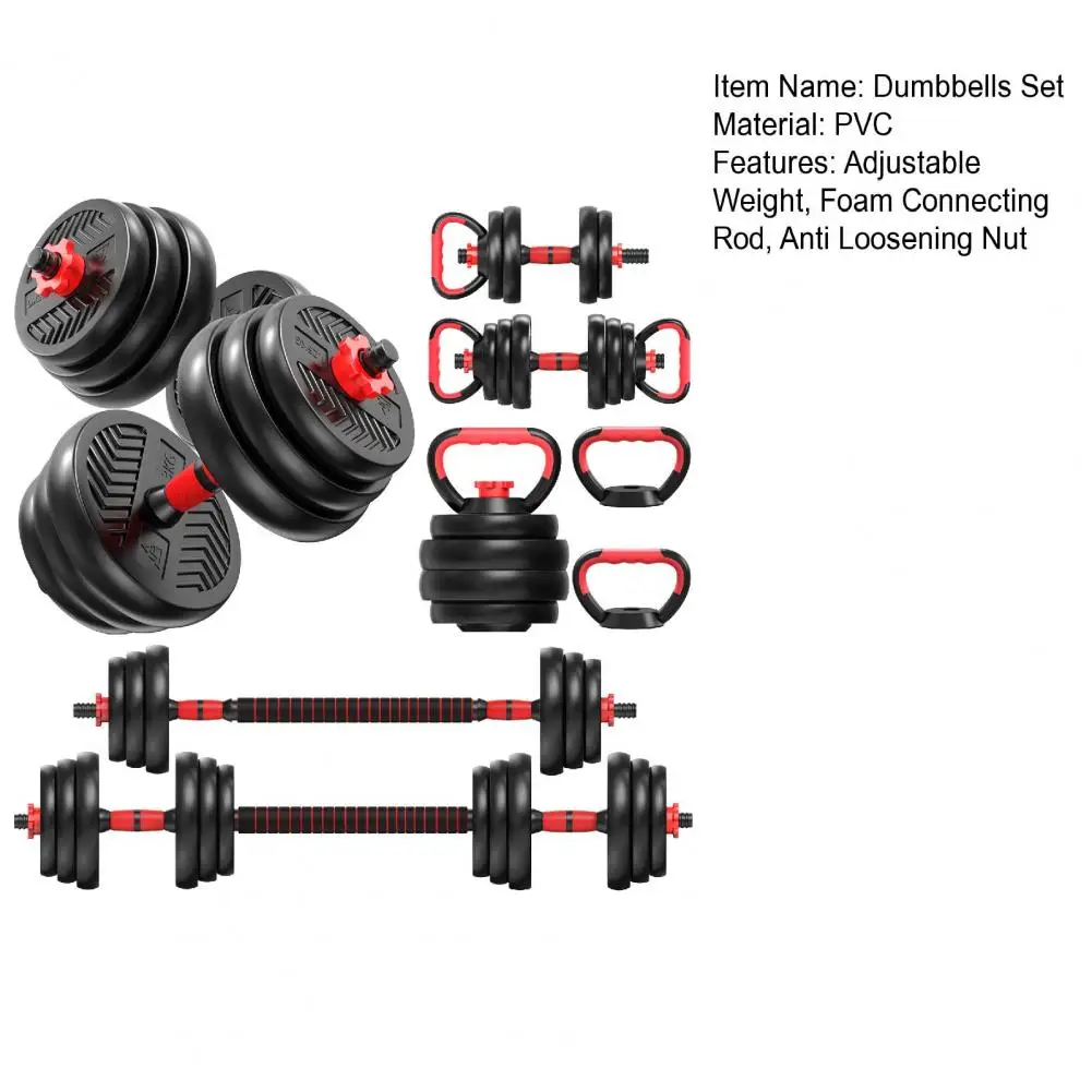 4-in-1 Adjustable Weight Dumbbell Set for Home Gym - Ergonomic Design with Dumbbell Barbell Kettlebell & Push-Up Modes - Unisex Rubber Fitness Equipment
