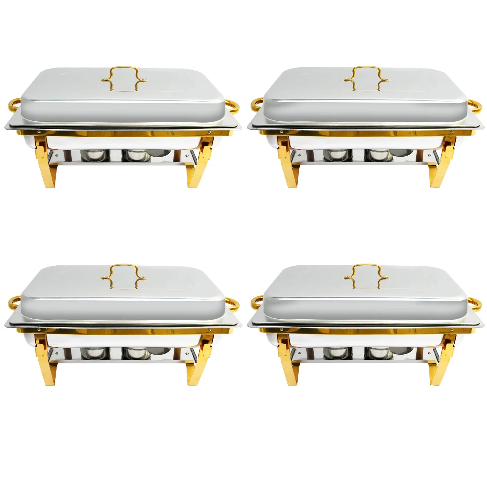 4 Pack Rectangular Chafing Dishes Set 8QT 9QT Semi Gold Plated Stainless Steel Buffet Warmer for Hotel Catering or Wedding Parties