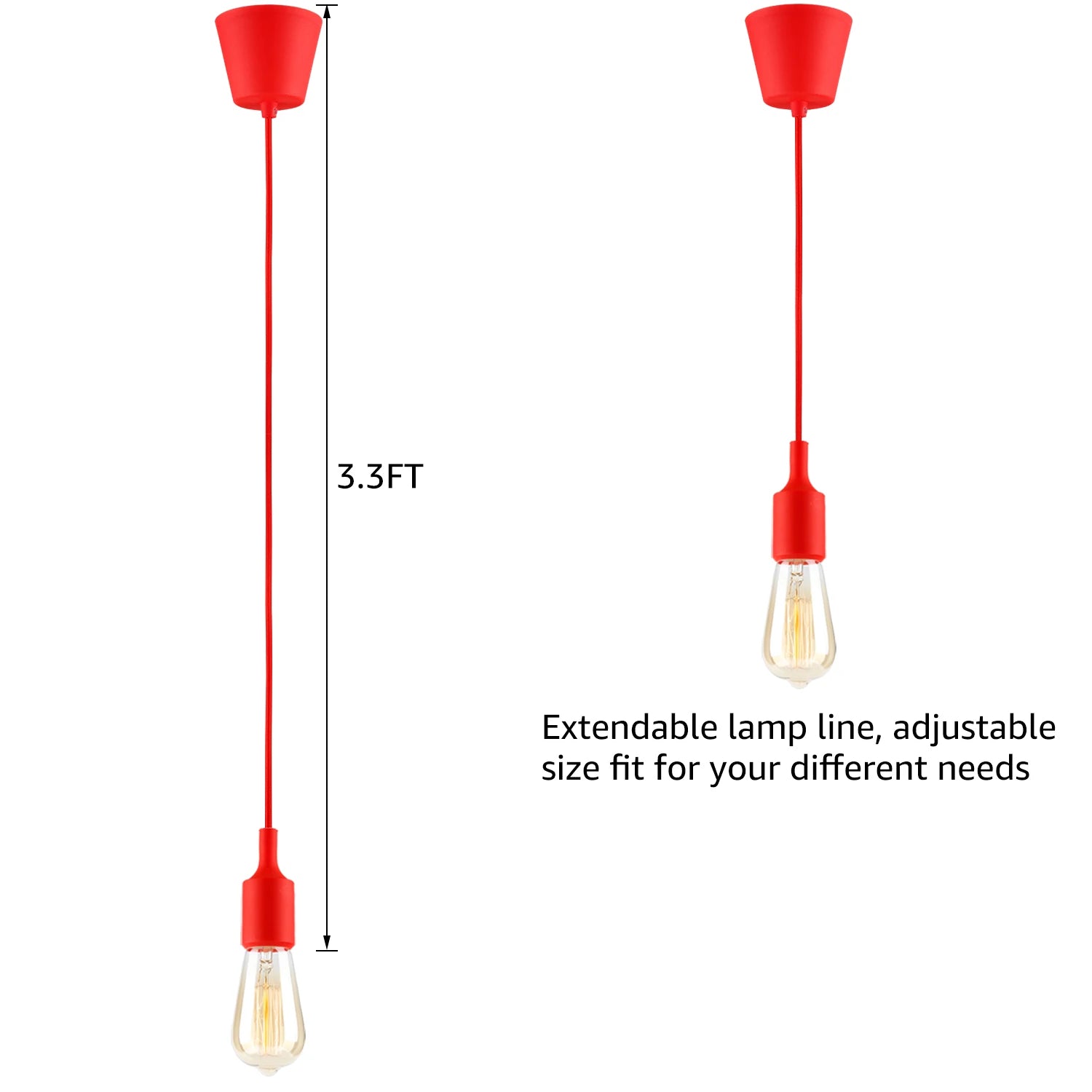 4 Pack Socket Pendant Light Fixture, E26/E27 Lamp Holder for Home, Commercial, Pub, Counter, Decorative Lighting, RED
