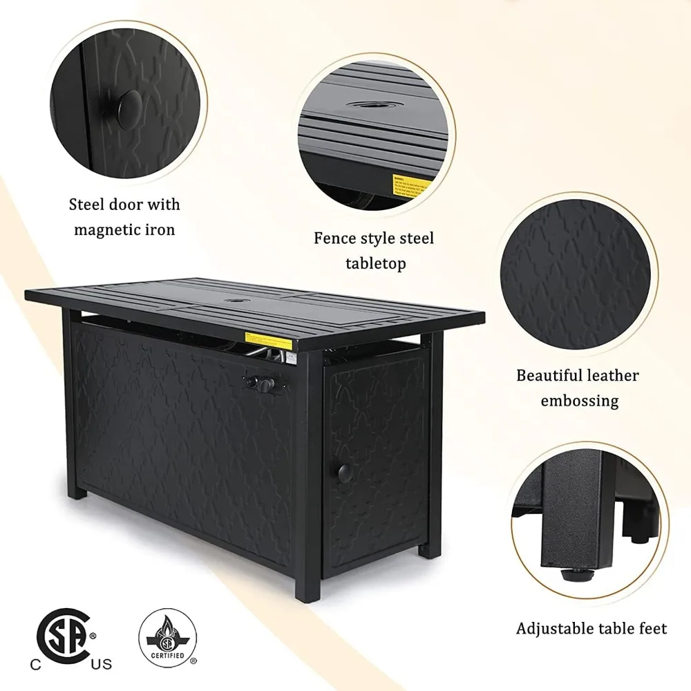 - 【Beautiful Glass Stones and Perfect Size】:Gas Fire Pit with advanced glass stones bring the beautiful flames, a warm atmosphere for your family and friends to reunite.The Size: 45"L x 23.2" W x 24.8"H, net weight: 78lbs.