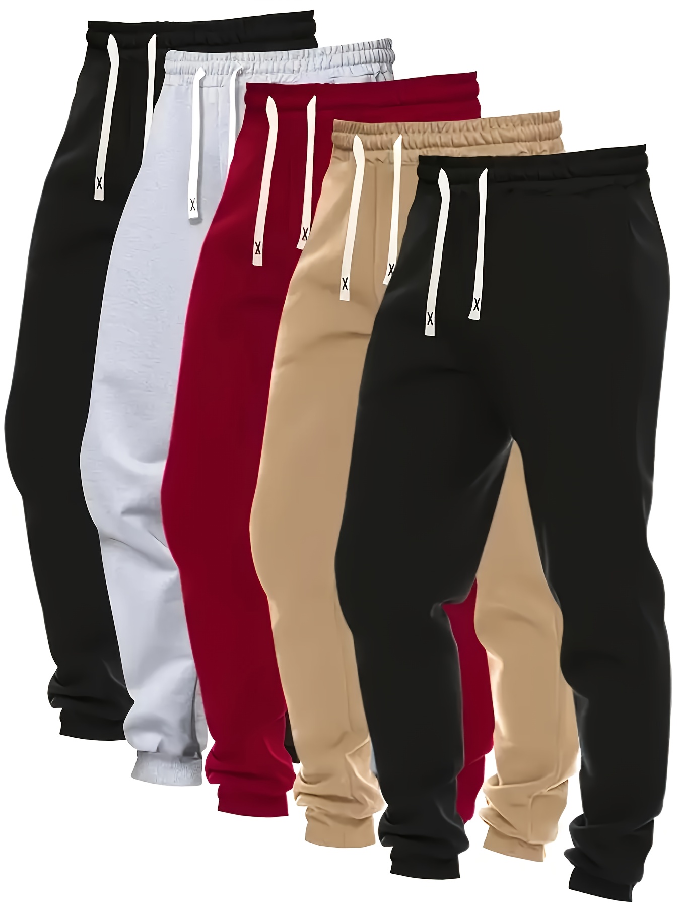 5pcs Men'S Jogger Pants - Elastic Drawstring Waist Gym Running Pants, Loose Fit Casual Trousers with Pocket - Black/Red/Beige/White/ - Autumn Workout & Everyday Streetwear for Men, Jogging Pants, Outdoor Activewear, Sporty De