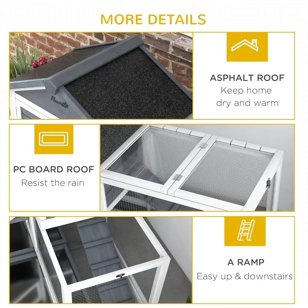 65" Wooden Rabbit Hutch with Openable Roof And Wheels Guinea Pig Playpen Bunny House Enclosure Breathable Pet Storage Box Cat Bed