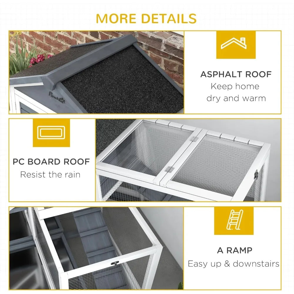 - Easy Access: This outdoor rabbit house includes four large doors and an asphalt roof that can be opened to access your pet. There are three built-in slide-out trays under the nesting box, which makes cleaning faster.