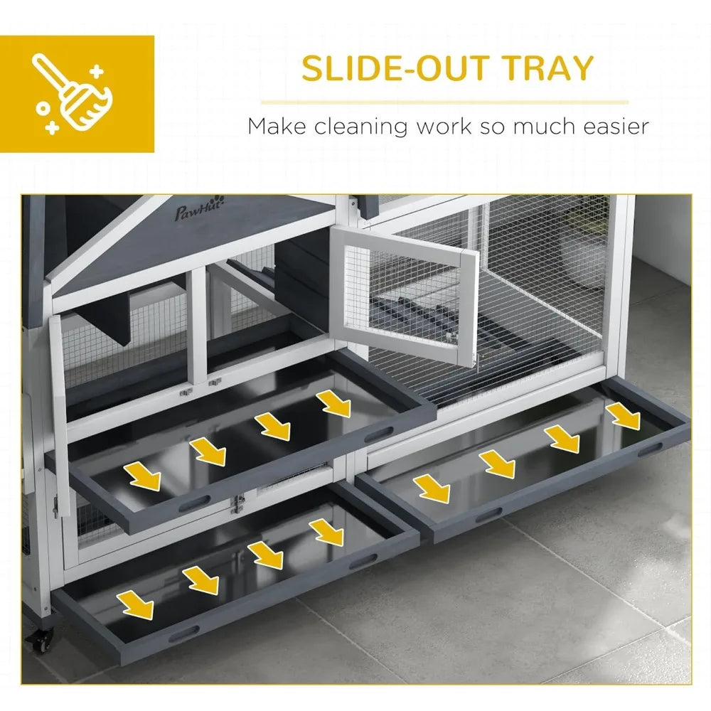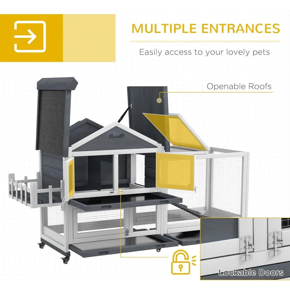 - Easy Movement: Equipped with six wheels and two brakes, this outdoor bunny cage can be effortlessly moved and securely locked. Enjoy the flexibility to position it wherever you desire.