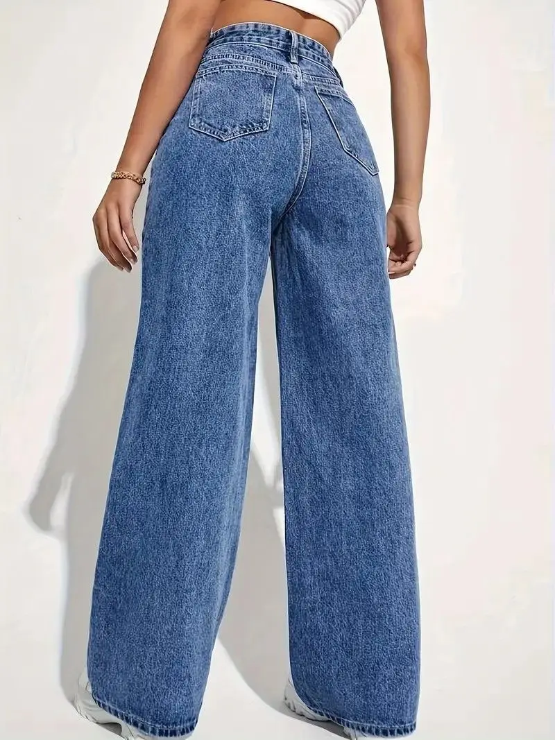 Autumn and Winter New Mopping Wide Legs Europe and The United States Loose High Waist Straight Slim Jeans Women