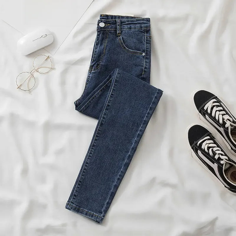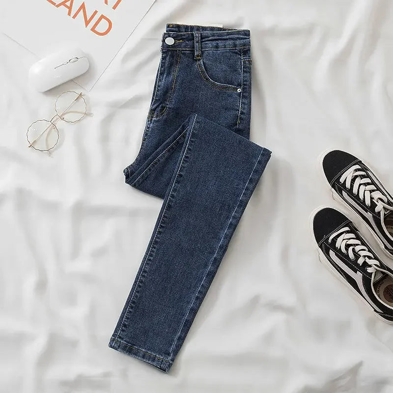 Black Grey Jeans Women's Slimming Cropped Pants Chic Versatile Student Short Trousers Long Pants Slim Fit Sihouette Smoothing