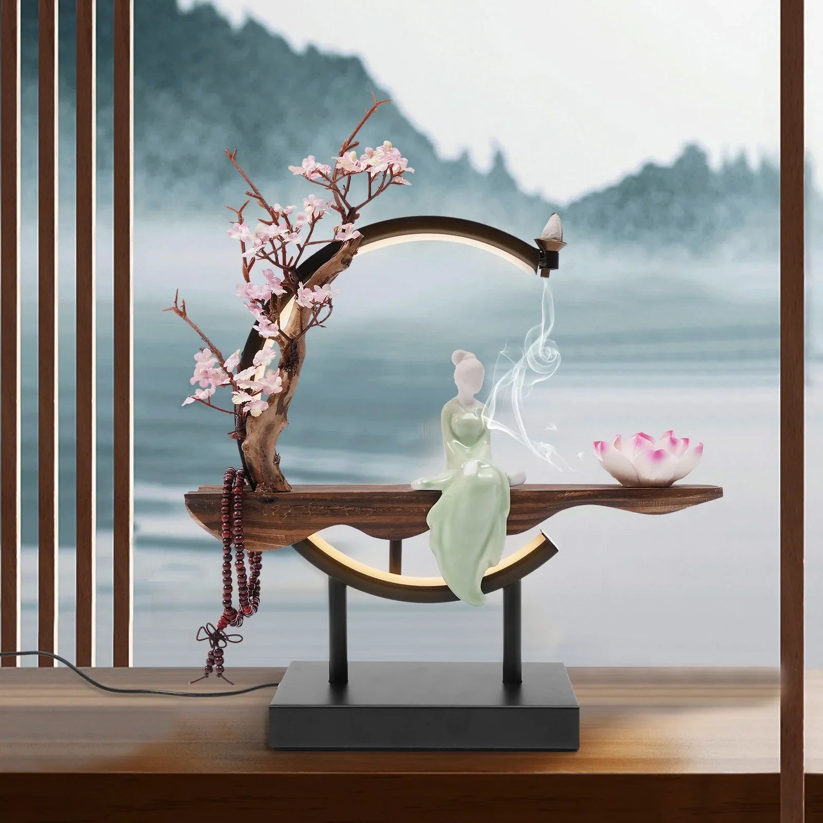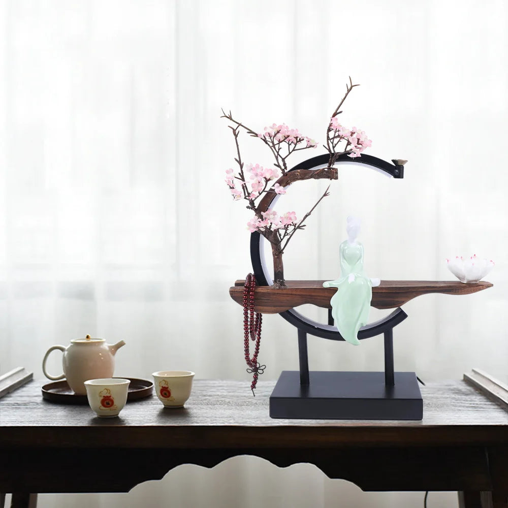 Fine Workmanship: Elegant ceramic figures and a beautiful wooden flowering tree base create a comfortable and pleasant atmosphere for you.