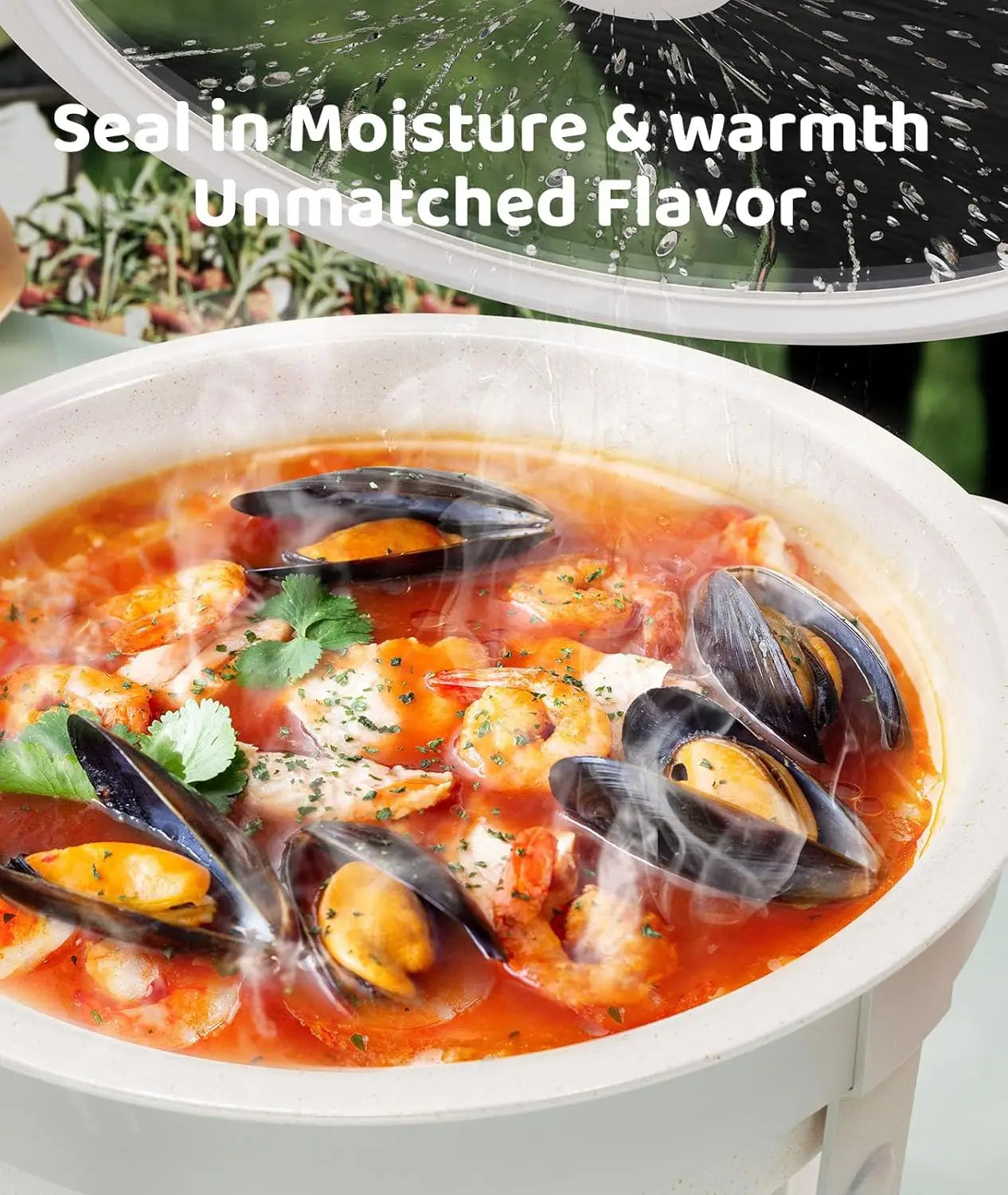 Experience the first Maifanite-coated chafing dish buffet set—4-pack, 5QT food warmers that elevate parties with nature-inspired elegance, superb heat retention, and worry-free performance.
