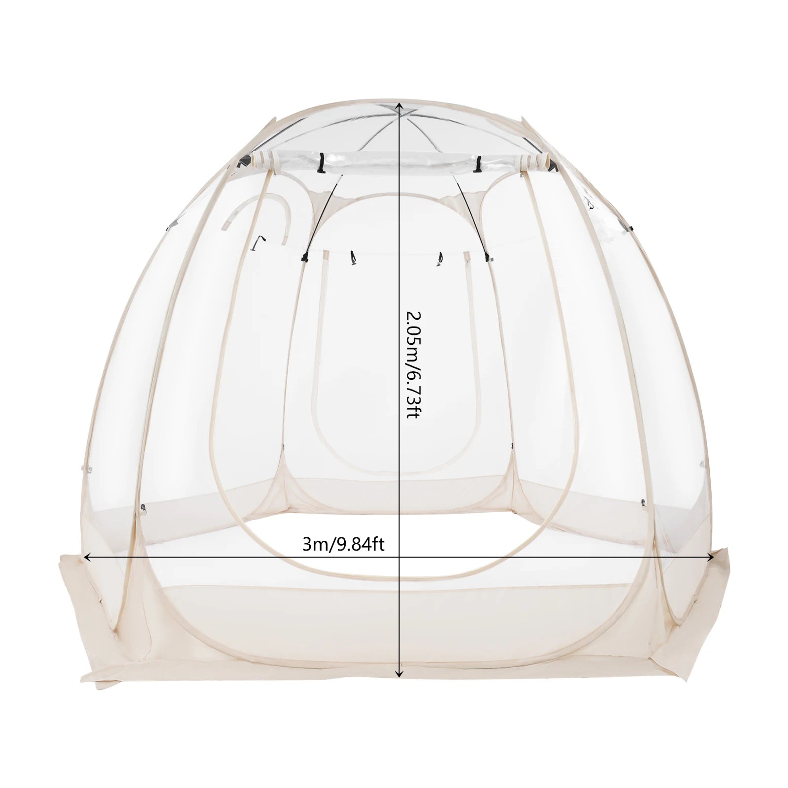 Clear Pop Up Bubble Tent 3x2.05m Outdoor Garden Camping Tent for 3 to 4 People with Glass Fiber Rods