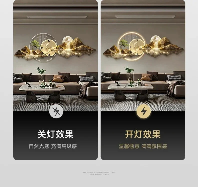 Luxury Minimalist Wall Clock with LED Aesthetic for Living Room Silent Nordic Home Decoration