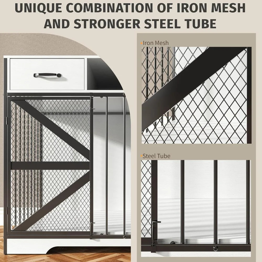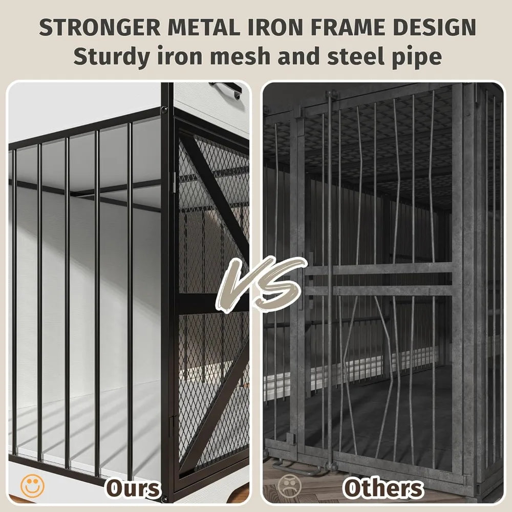 - Chew-Resistant Durability: Crafted from high-quality wooden boards and reinforced with steel tubes and high-strength steel mesh, this heavy-duty dog crate stands strong against chewing, offering safety and longevity.