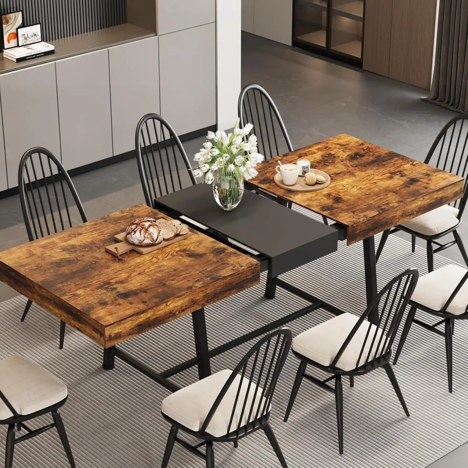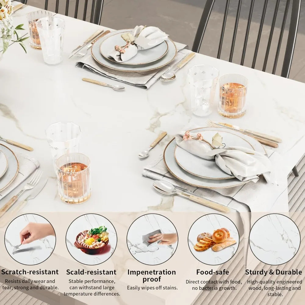- Style Fusion for Every Home: The extendable dining room table blends classic woodgrain/marble texture + industrial-chic metal legs to match farmhouse, minimalist, or urban décor.