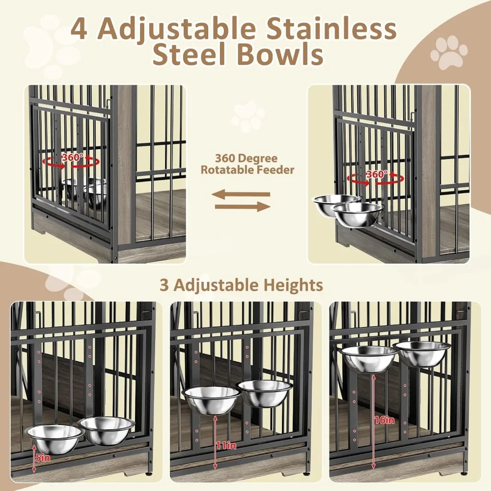 - 【Sturdy and Chew-Resistant】This dog kennel indoor furniture for 2 dogs is made of premium particle board and iron pipe. Thicker wooden boards and metal pipes are more sturdy, bite-resistant, and have better load-bearing capacity