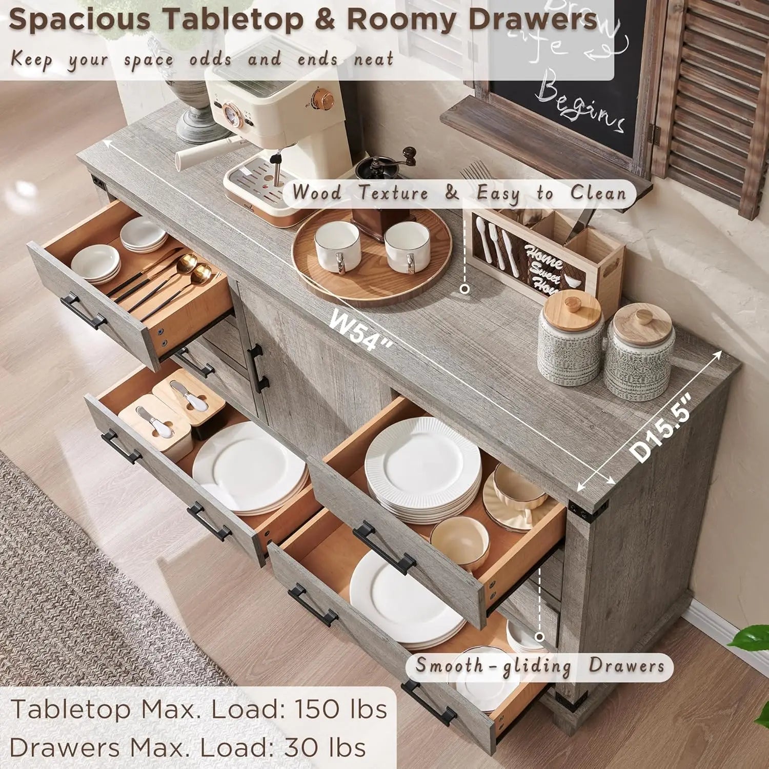 - Ample Storage Versatility: Measuring 54"L x 15.5"W x 31.25"H, this 8-drawer dresser offers abundant storage for all your needs. The smooth-glide drawers and adjustable-shelf cabinet provide space for clothes, bedding, cosmetics, jewelry, and more. Whether in the bedroom or as a chic storage solution in your living room, this multi-purpose dresser delivers unmatched functionality and style