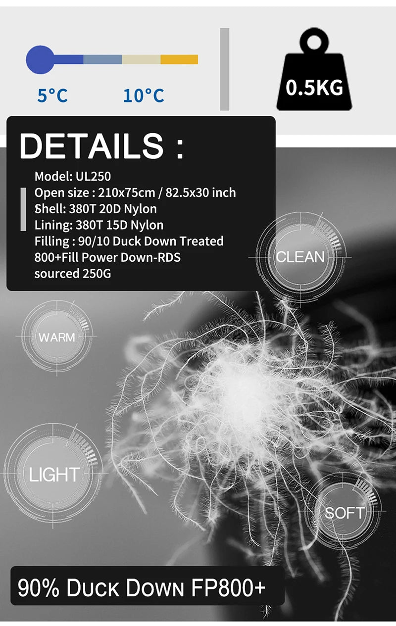 The Kamperbox Ultralight Down Sleeping Bag UL250 stands out in the market for its incredible warmth-to-weight ratio and eco-conscious design. Whether you're embarking on a weekend camping trip or a challenging trek, this sleeping bag is your trusted companion. Don't let the cold hold you back from exploring the wild!