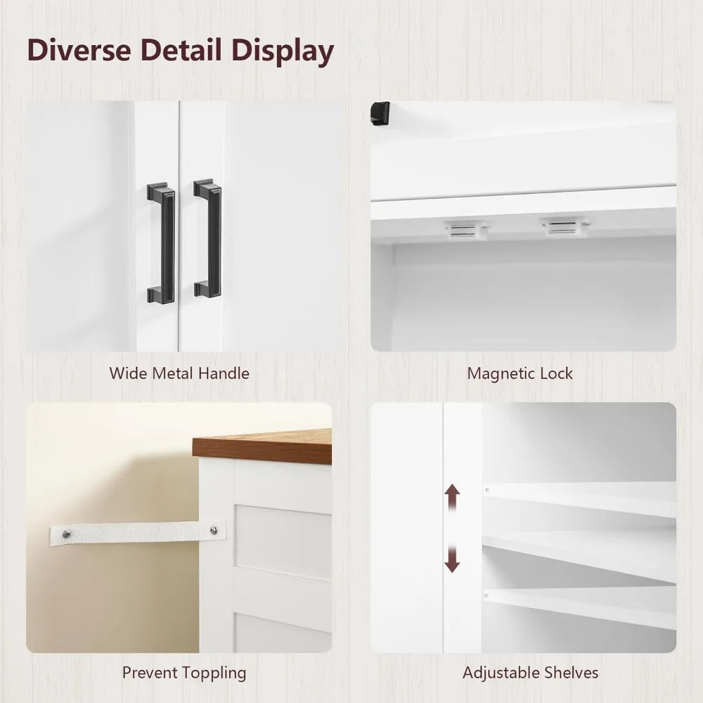 Large 63" Farmhouse Style Buffet Cabinet with 2 Adjustable Shelves and 4 Doors for Storage and Coffee Bar