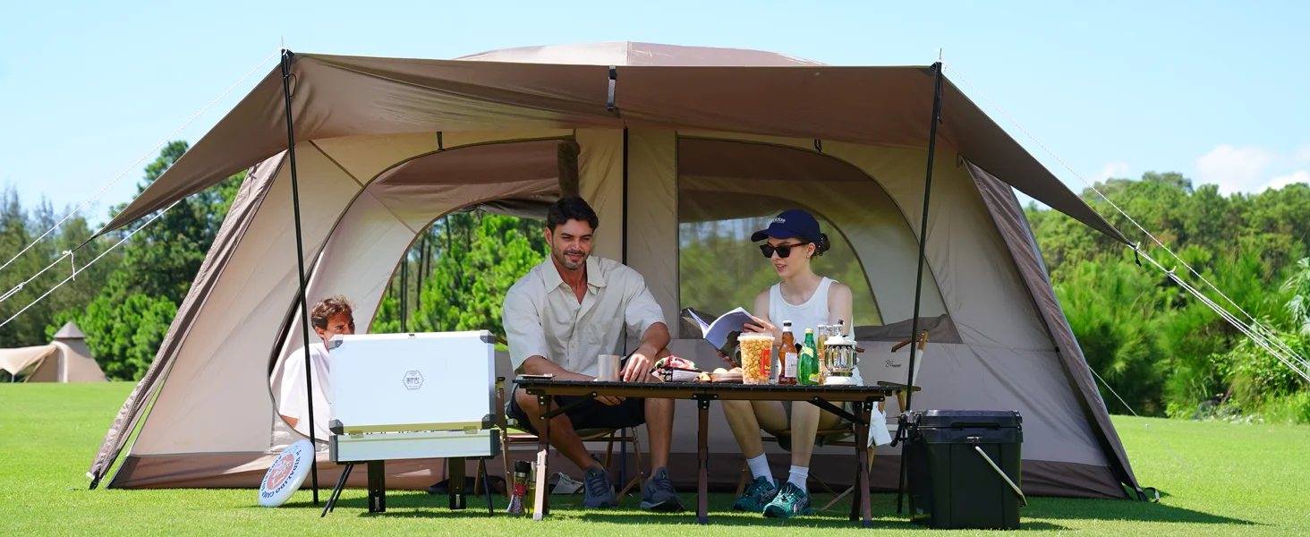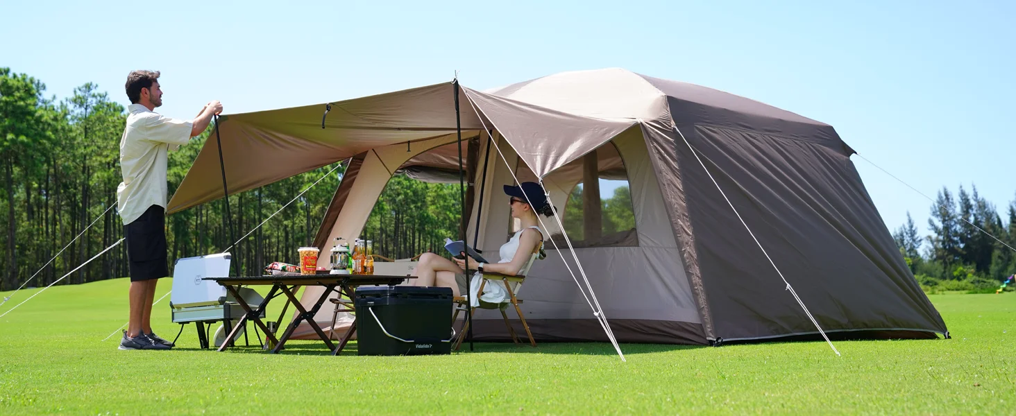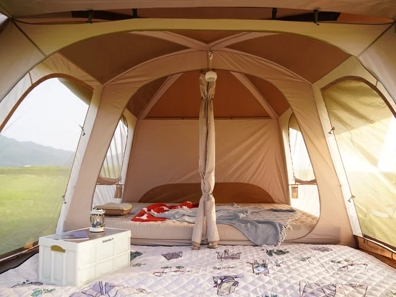 With fully waterproof fabric, no need to worry about the rain, one good family tent for outdoor camping.