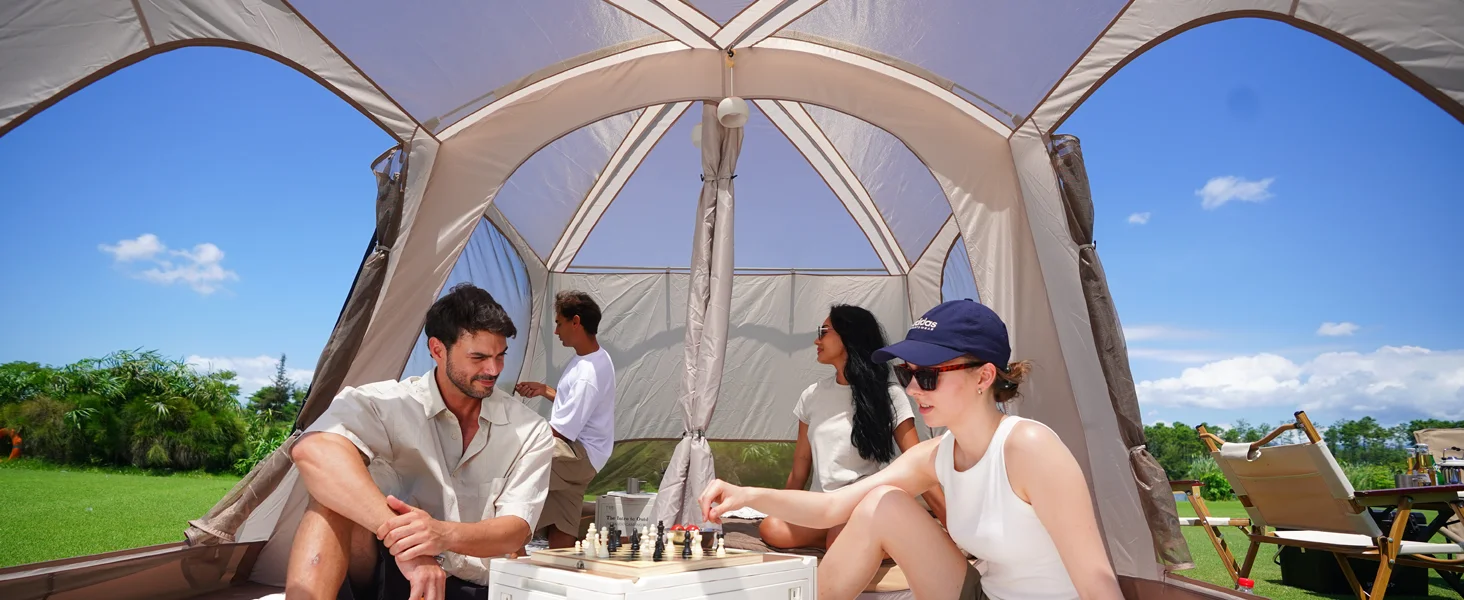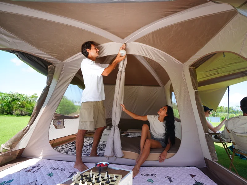 With a separated curtain, the tents becomes two room cabin tent. Take this glamping tent back to home, enjoy outdoor camping life with your family today.
