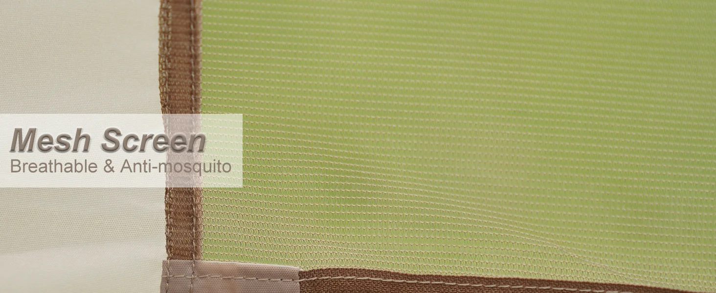 Top Large Mesh Roof makes it available to watch stars with a wide view at night; Three sides of big mesh doors and the other two on each windows boost air ventilation.
