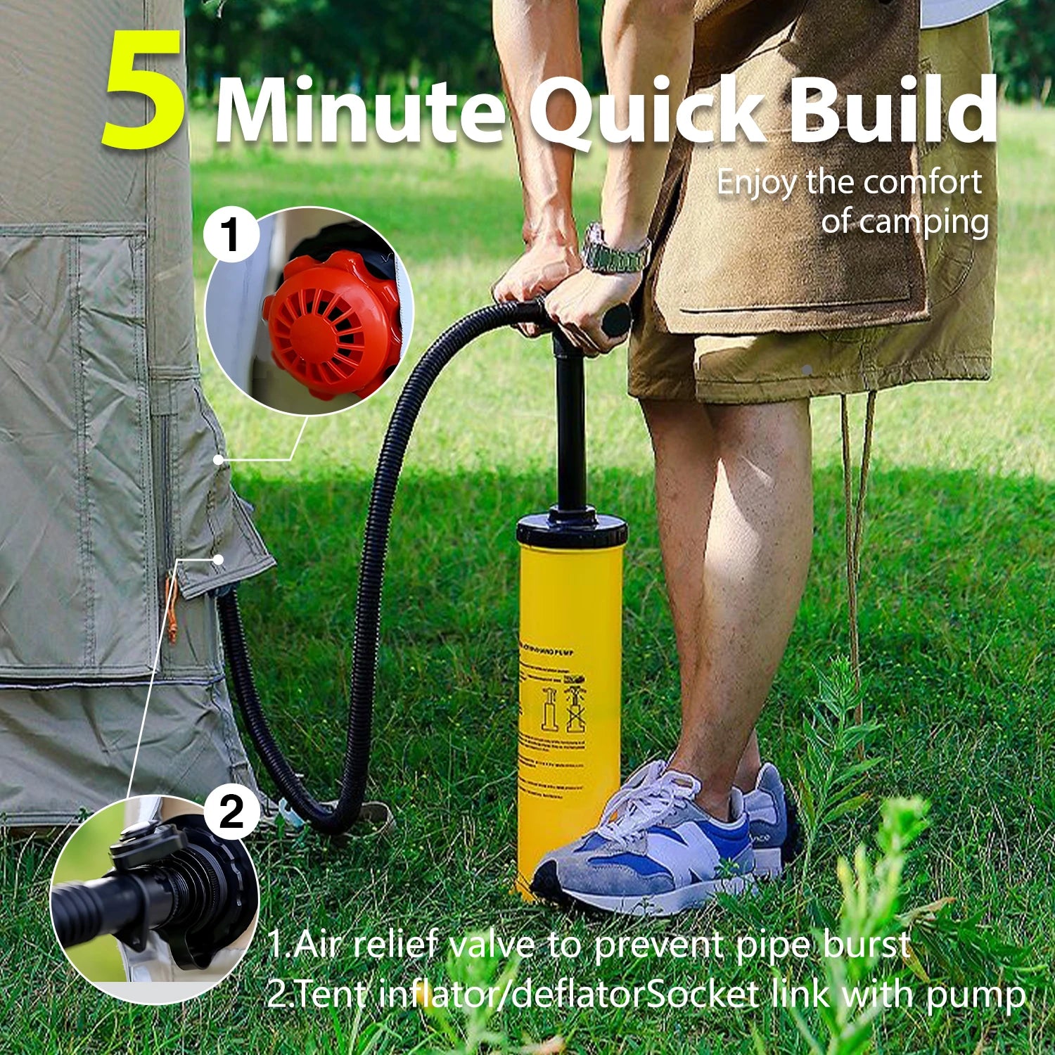 Discover the ultimate solution for your outdoor adventures with the Large Inflatable Tent, offering an impressive 135 SQFT of space designed to comfortably accommodate 8 to 10 people. This four-season waterproof cabin tent is perfect for family camping trips or group outings, ensuring that you stay dry and cozy no matter the weather conditions.