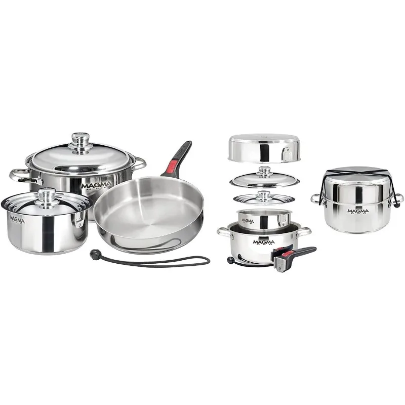Magma 7 Piece Gourmet Nesting Stainless Steel Cookware Set, Induction Compatible, Oven Safe to 500°F Suitable for All Stovetops