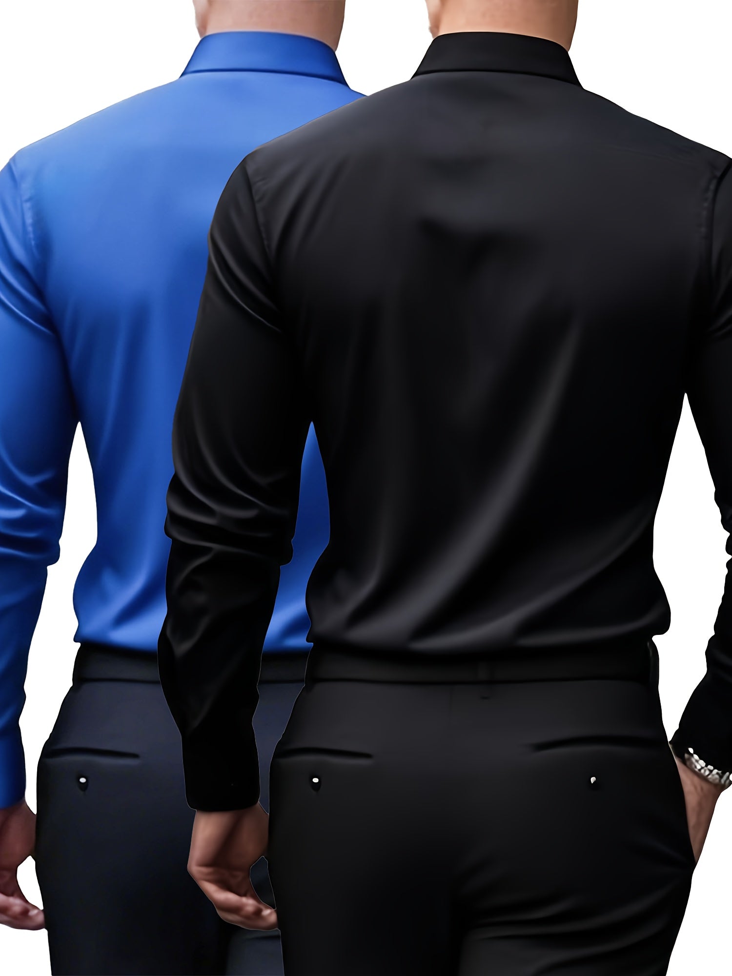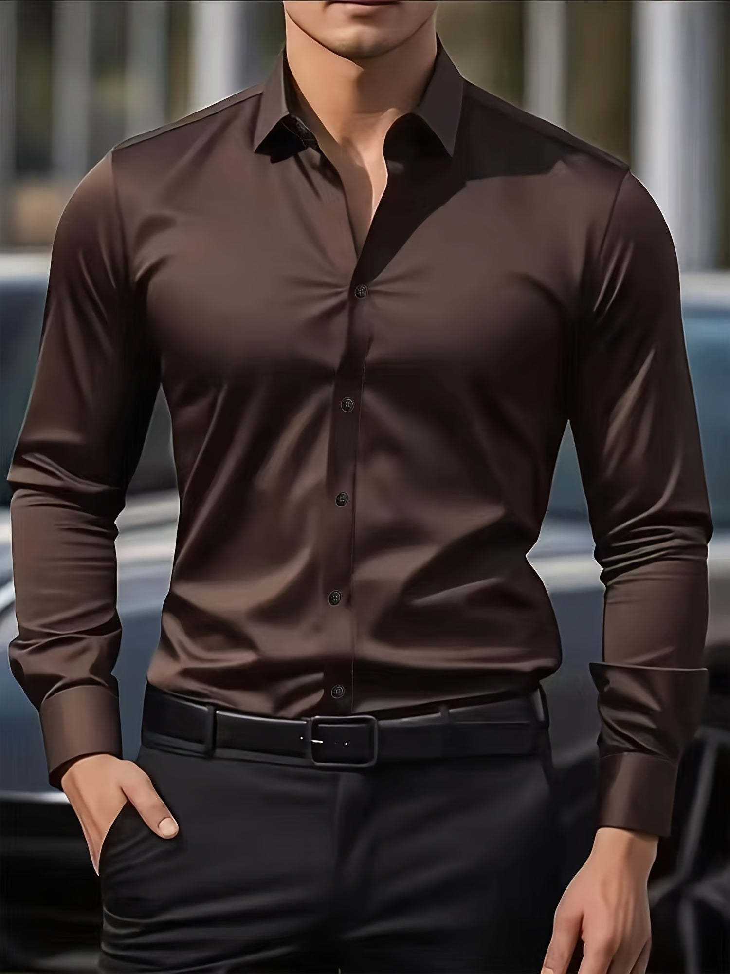 Men'S Formal & Business Casual Long Sleeve Shirt - Classic Point Collar Button-Up Blouse, Loose Fit Non-Stretch Fabric, All-Season Office & Everyday Formal Attire in Classic Colors (White, Brown, Black) - Easy Care Profession