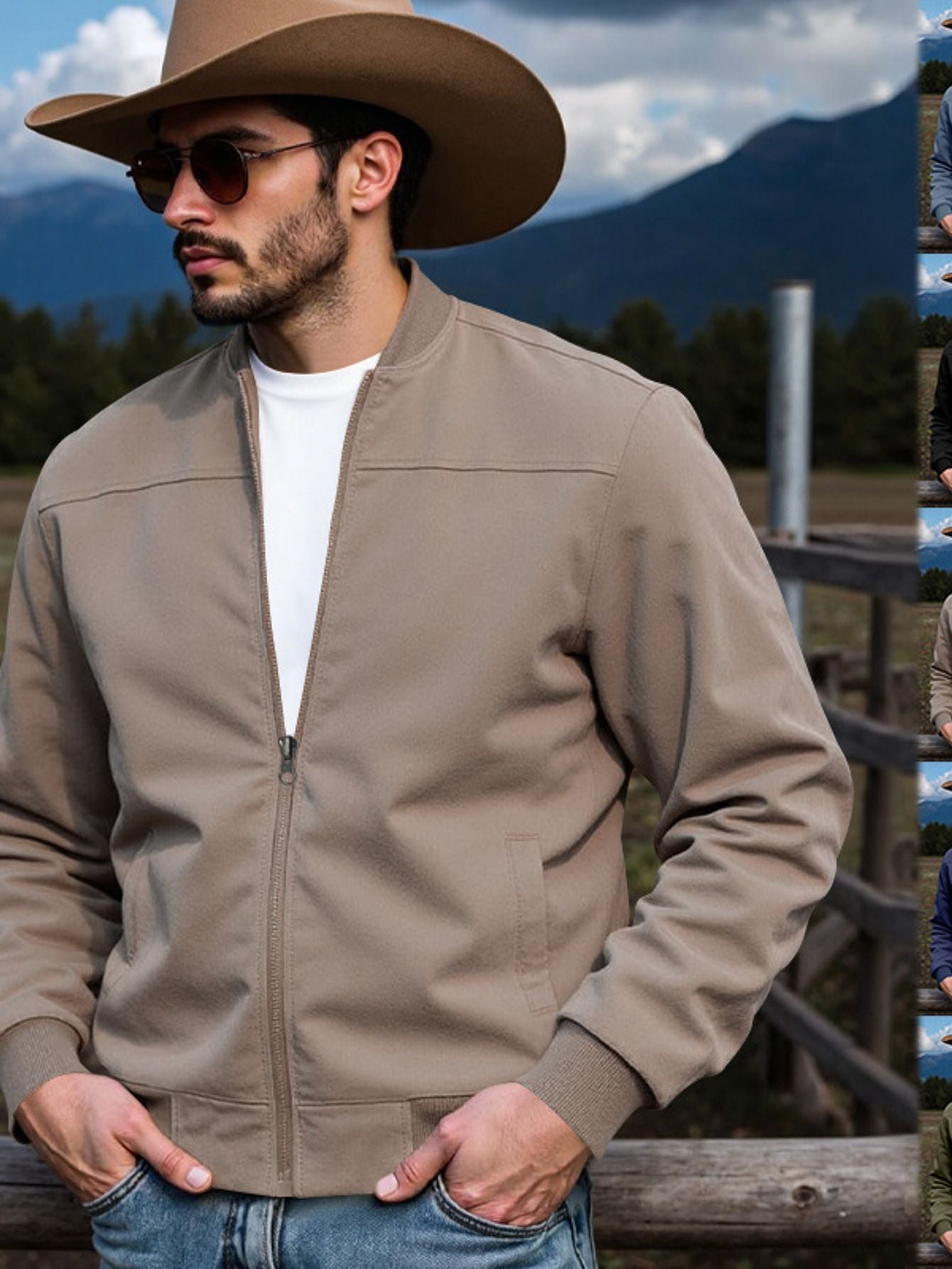 Men's Slim Fit Full-Zip Stand Collar Jacket - Luxury Full-Zip Closure, Zippered Pockets, Outerwear Coat for Fall/Winter, Navy Blue/Black/Other Colors, Machine Washable & Wrinkle-Resistant Casual to Formal Events, Patchwork De