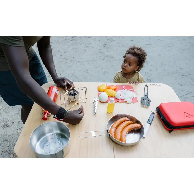 - Compact design folds down to 1/3 of its working size and fits in a two-liter pot for easy storage