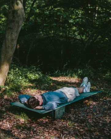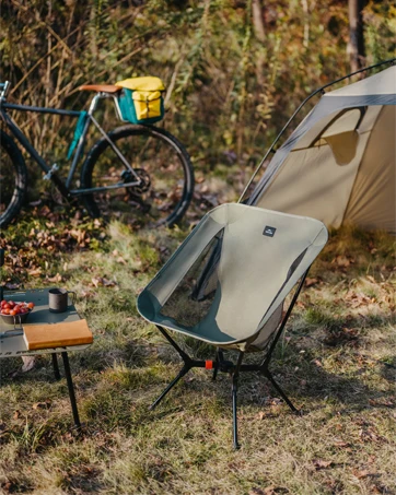 A camping chair that features both comfort and portability. The chair has 2 adjustable positions (90° & 145°) for sitting and lying.