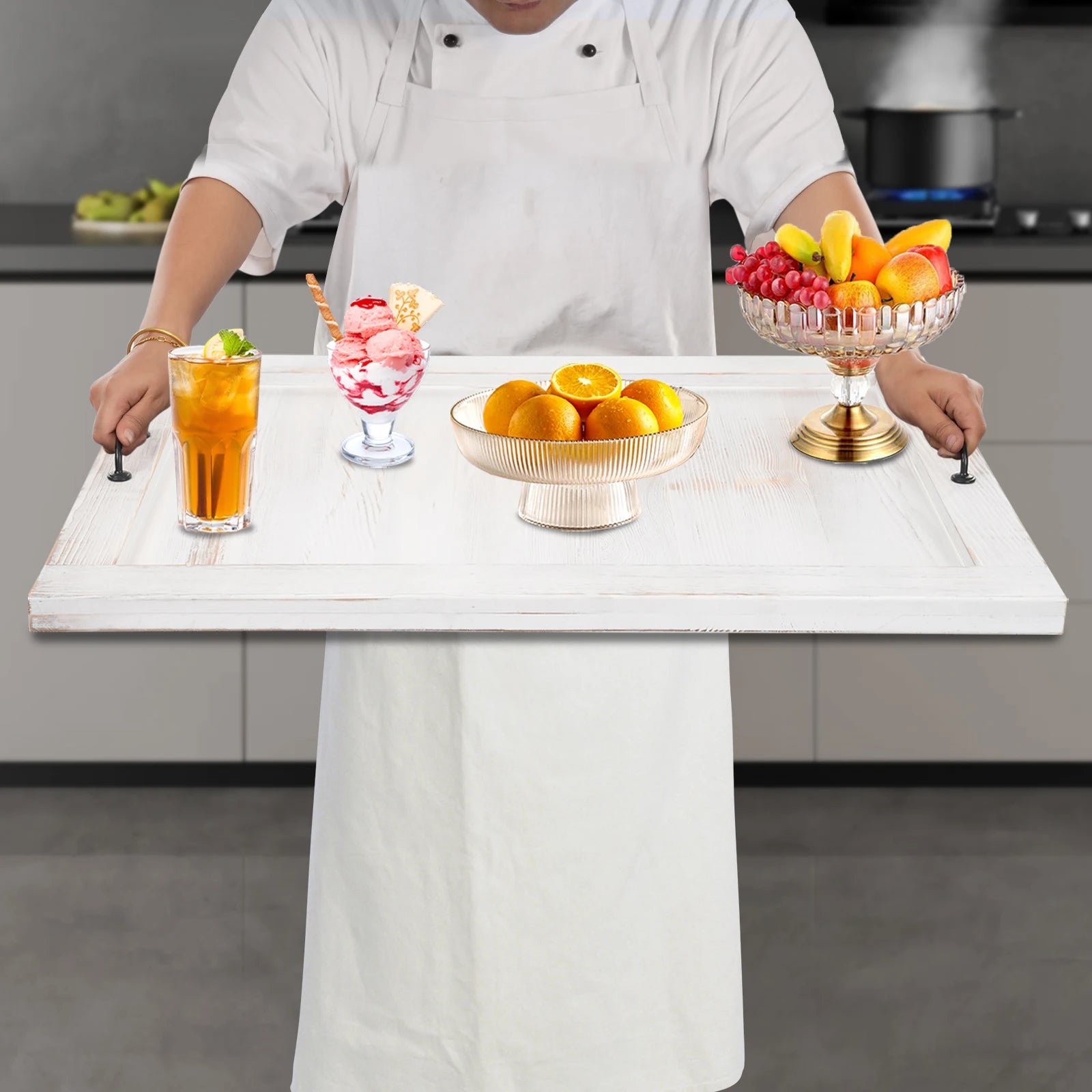 Thoughtful Design: The double handles make it easy for you to move the product around, while you can serve your breakfast or coffee on it, and in turn, enjoy your meal with your loved ones or friends and increase your relationship with each other. The open design makes it easy to place and access the food.