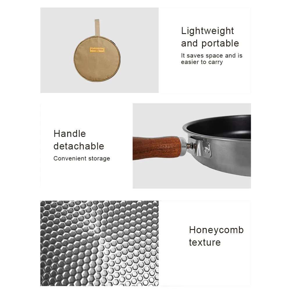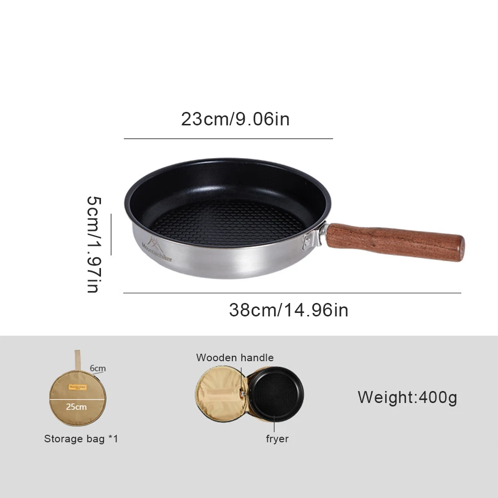 Breakfast Egg Pancake Pot with Wooden Handle Lightweight Camping Skillet Stainless Steel Portable Cooking Pan for Outdoor Hiking Specification: Origin: Mainland China Material: 304 Stainless Steel Sanding + Teflons Coating + Sapele Wood Handle Unfolded Size: 38cm/14.96in*23cm/9.06in*5cm/1.97in Storage Size: 25cm/9.84in*25cm/9.84in*6cm/2.36in Net Weight: About 400g