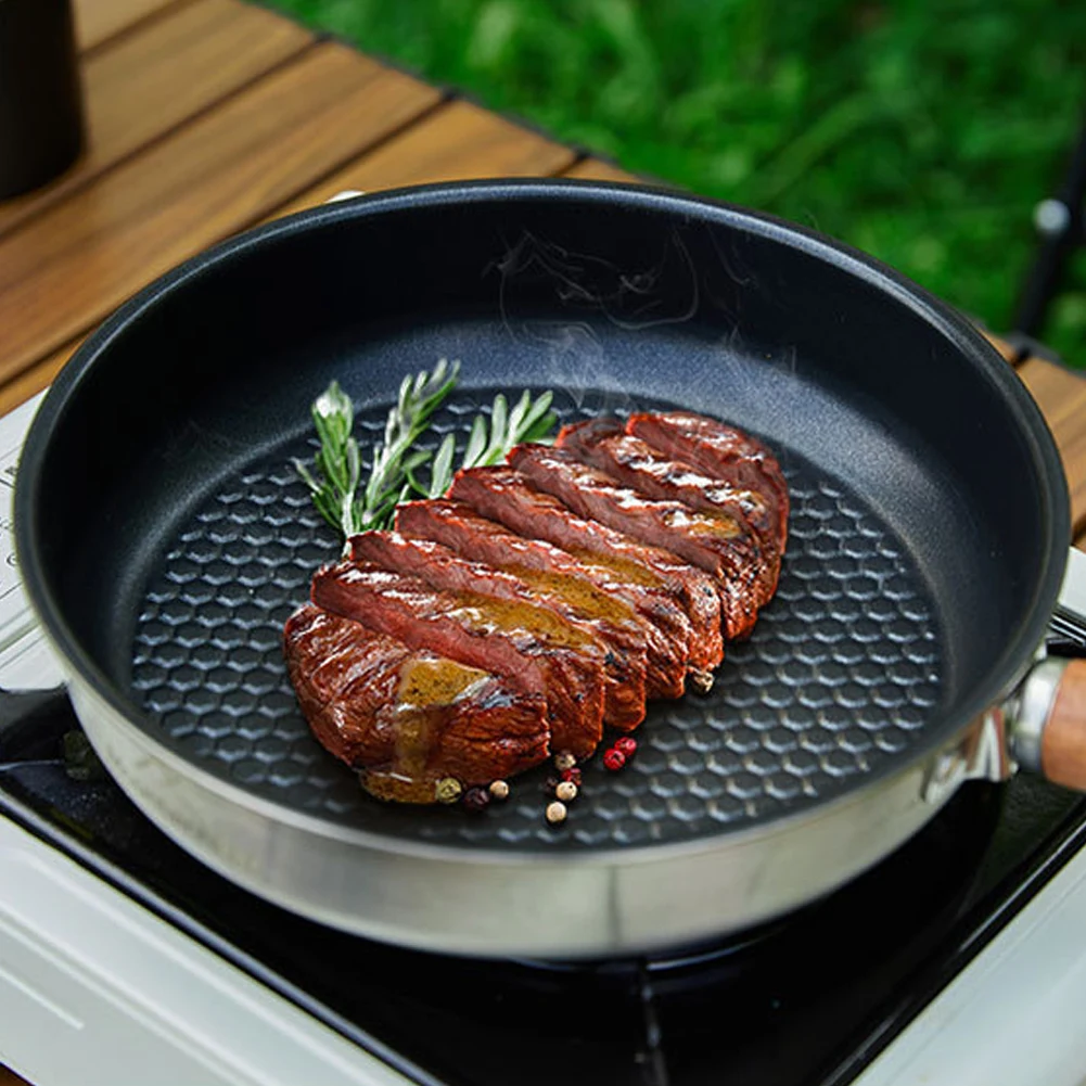 Outdoor Camping Frying Pan Nonstick Coating Breakfast Egg Pancake Pot Stainless Steel Portable Cooking Pan for Outdoor Hiking