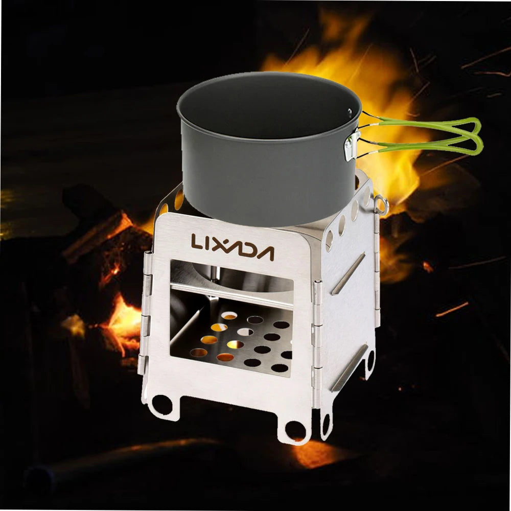 Portable Stainless Steel BBQ Stove Lightweight Folding Wood Outdoor Camping Cooking Picnic Backpacking Wind Shield with Ignition