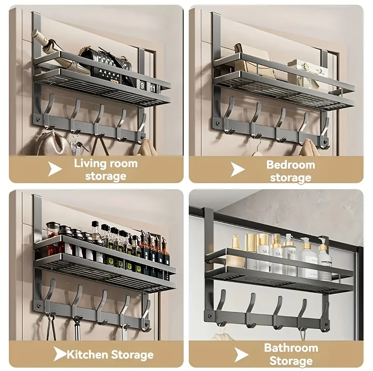 Punch-Free Door Hook Storage Holder Multifunctional Metal Hooks Easy-Install Bedroom Bathroom Kitchen Organizer Rack Coat Hook