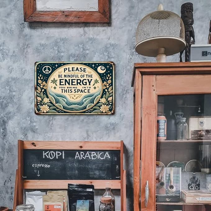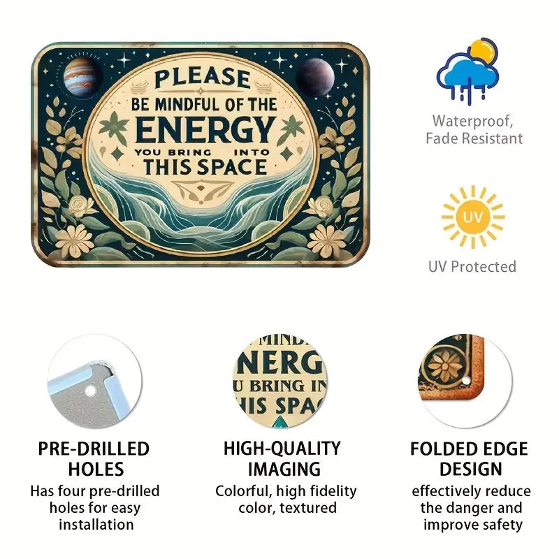 Retro Style Metal Sign 'Please Pay Attention to Energy' Room Decor Aluminum Sheet Metal Plaque Eye-catching Wall Art