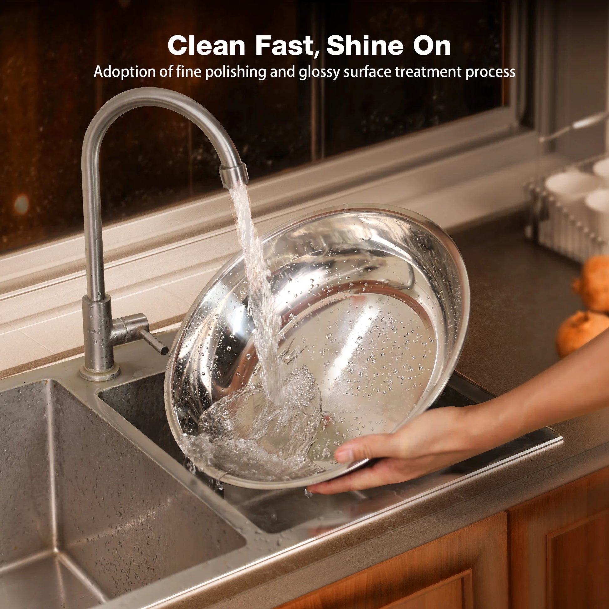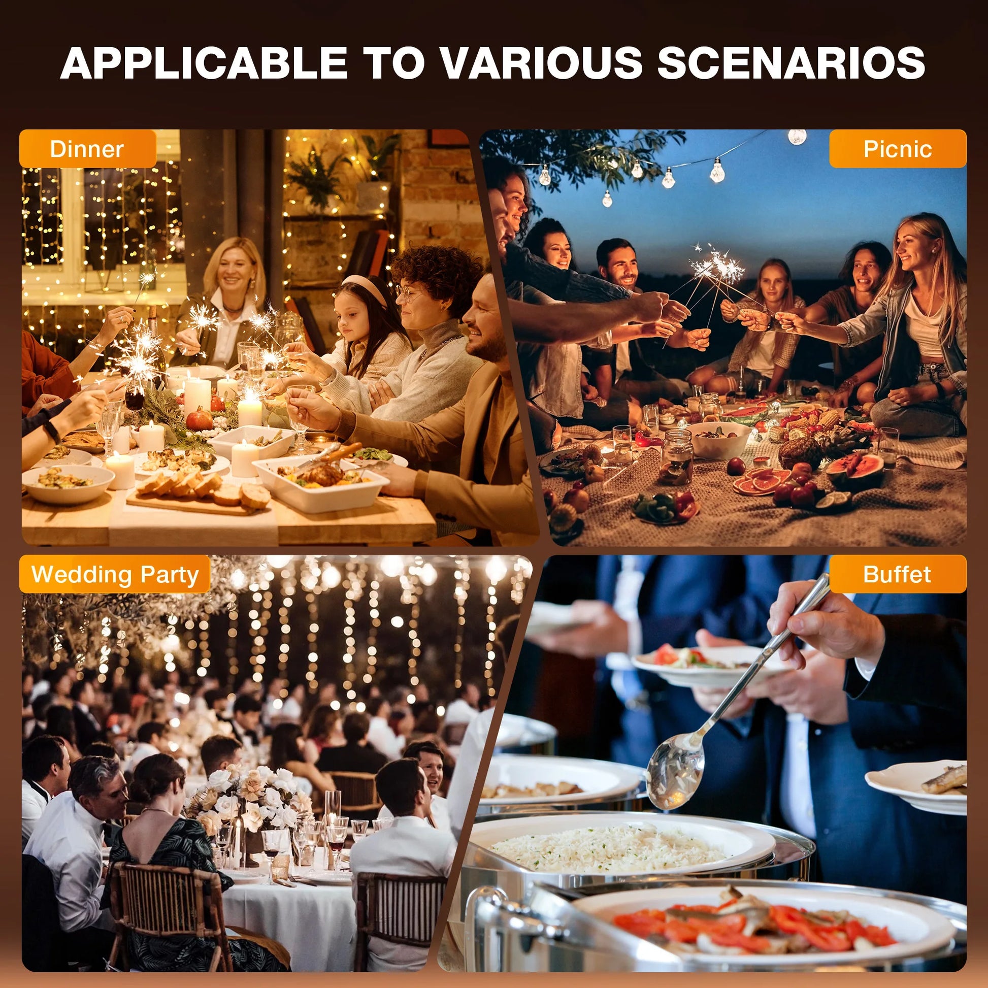 4.[Clean Fast, Shine On] Chafers and buffet warmers sets adopts fine polishing surface treatment process, the smooth surface is easy to clean, allowing for effortless maintenance and ensuring hygienic food preparation and service.
