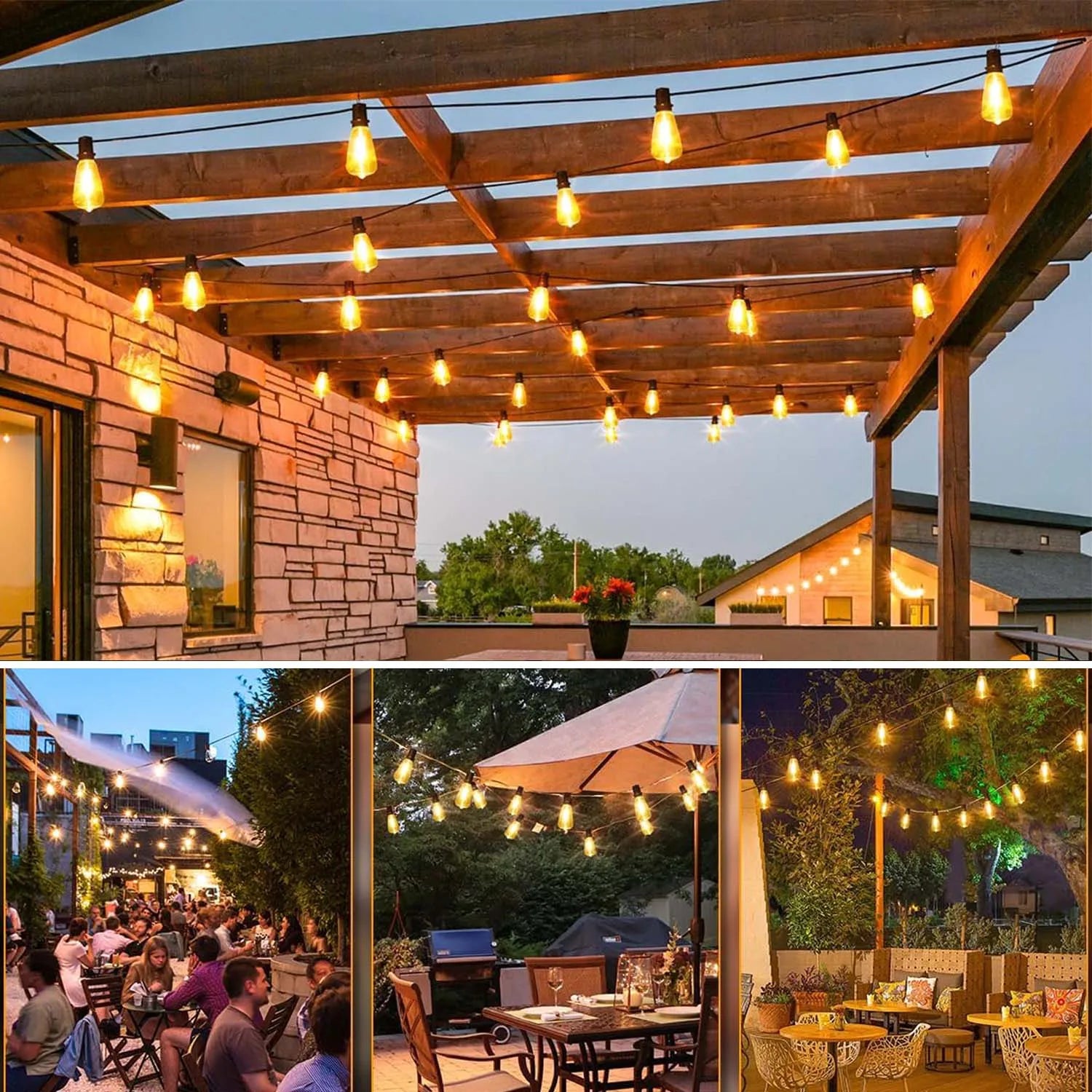 ST38 String Lights Outdoor 28FT 1/2/3 Pack with US Plug 10+1 LED Patio Fairy Garden Lamps for Home Xmas New Year Party Halloween