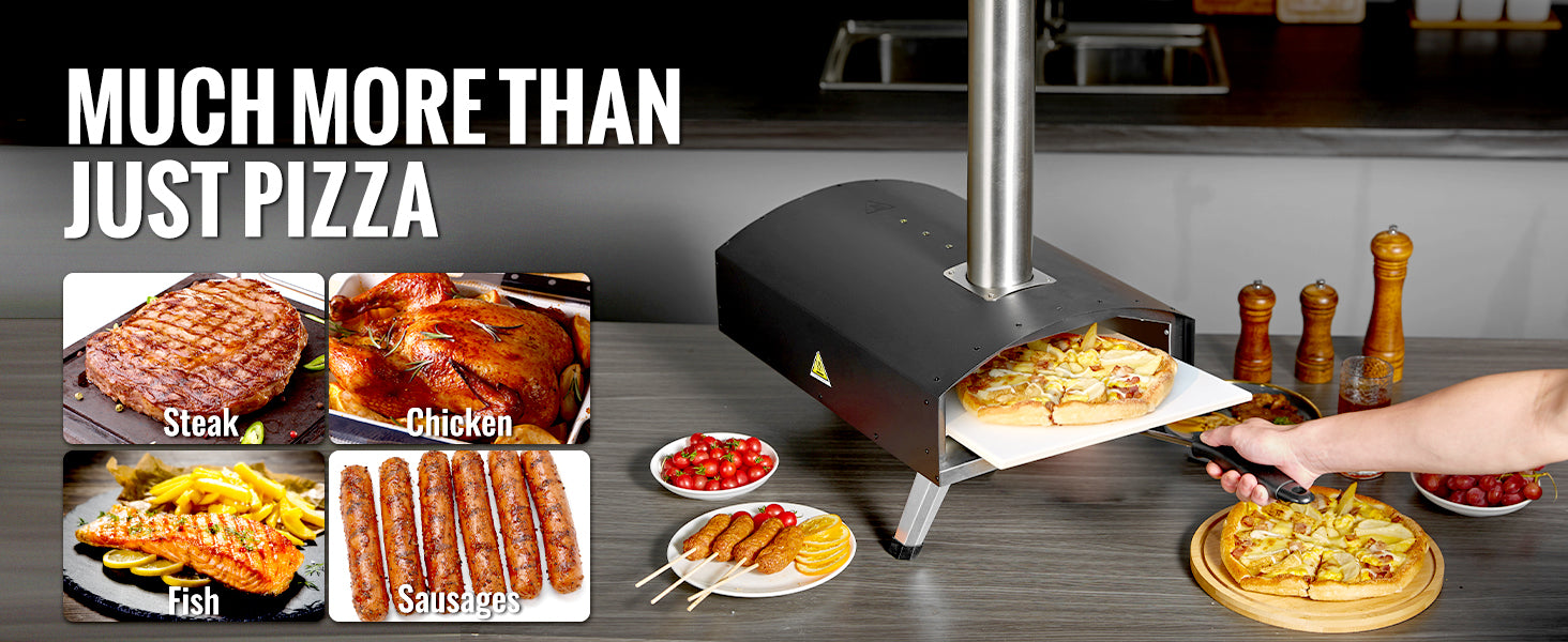 - Quick Cooking: Prepares authentic wood-fired pizzas in just minutes.