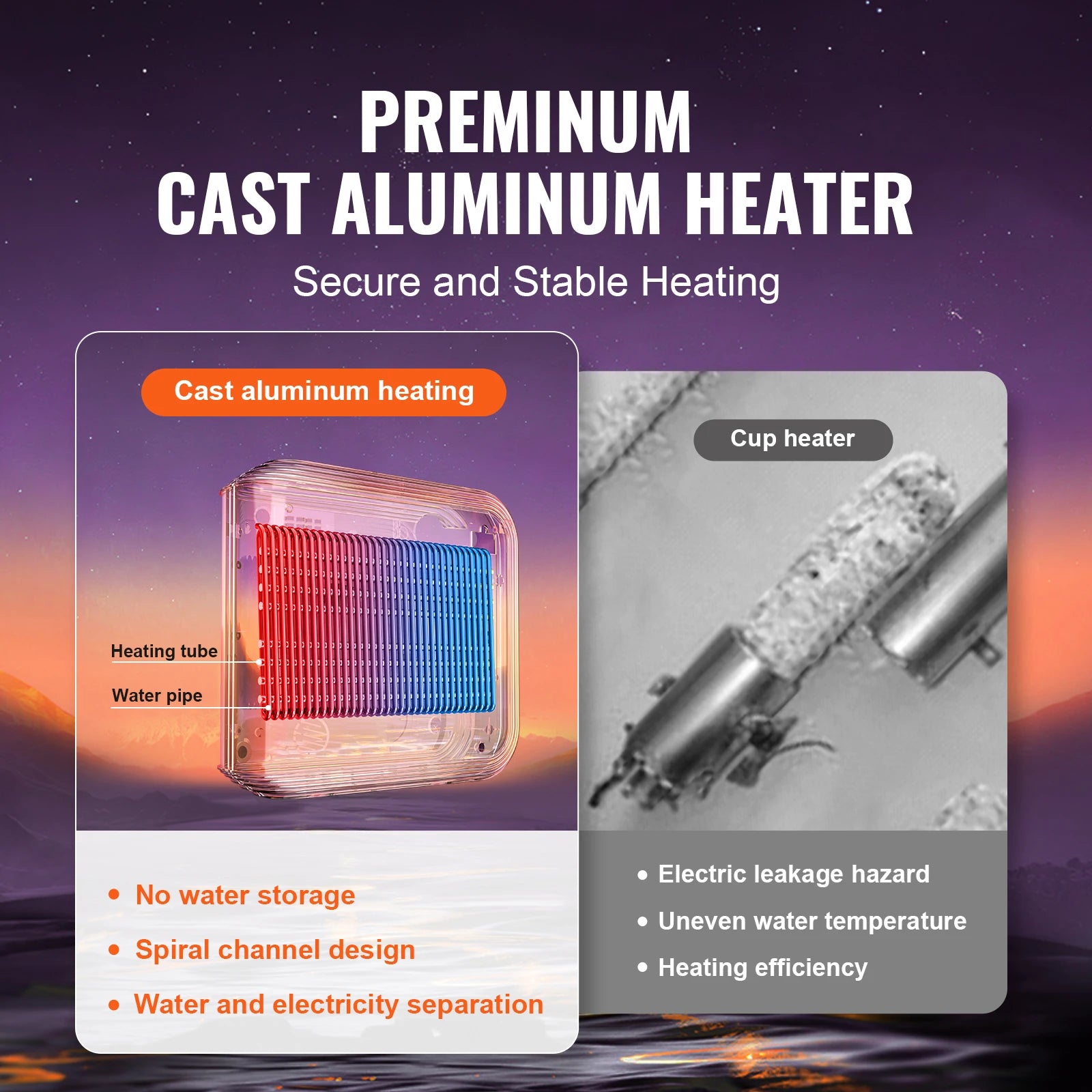 - Smart & Durable Design: The product utilizes an aluminum cast heater, offering excellent heating performance and durability, ensuring the product's long-term stable operation. Separate water and electricity, fast heating, and safety you can rely on.