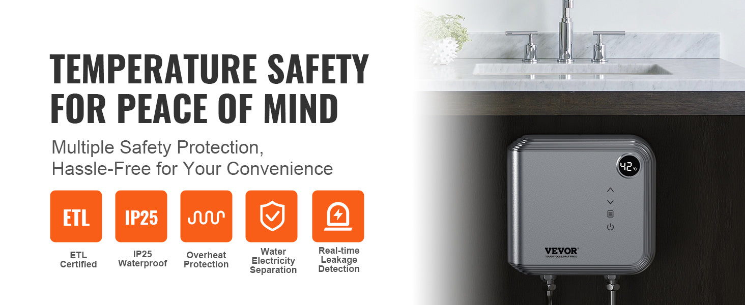 No need to wait, just three seconds to enjoy a comfortable hot water experience, making your life more convenient. VEVOR under sink water heater is high efficiency, durable, and secure to use.Instant Hot Water