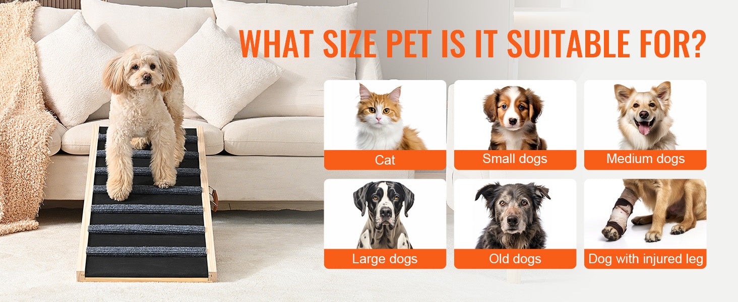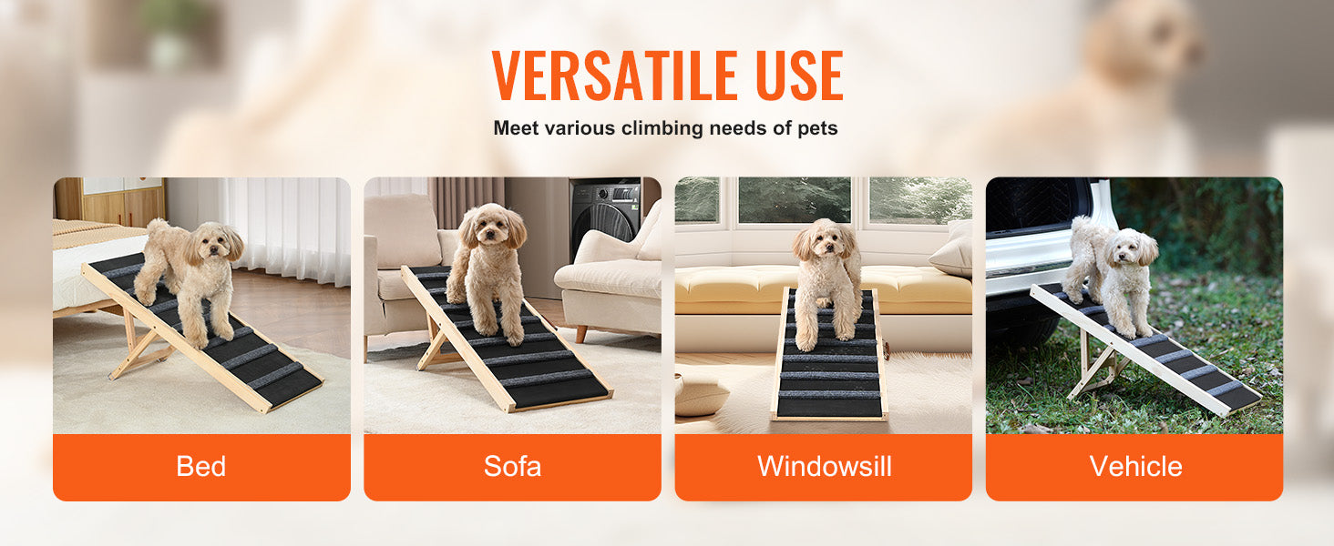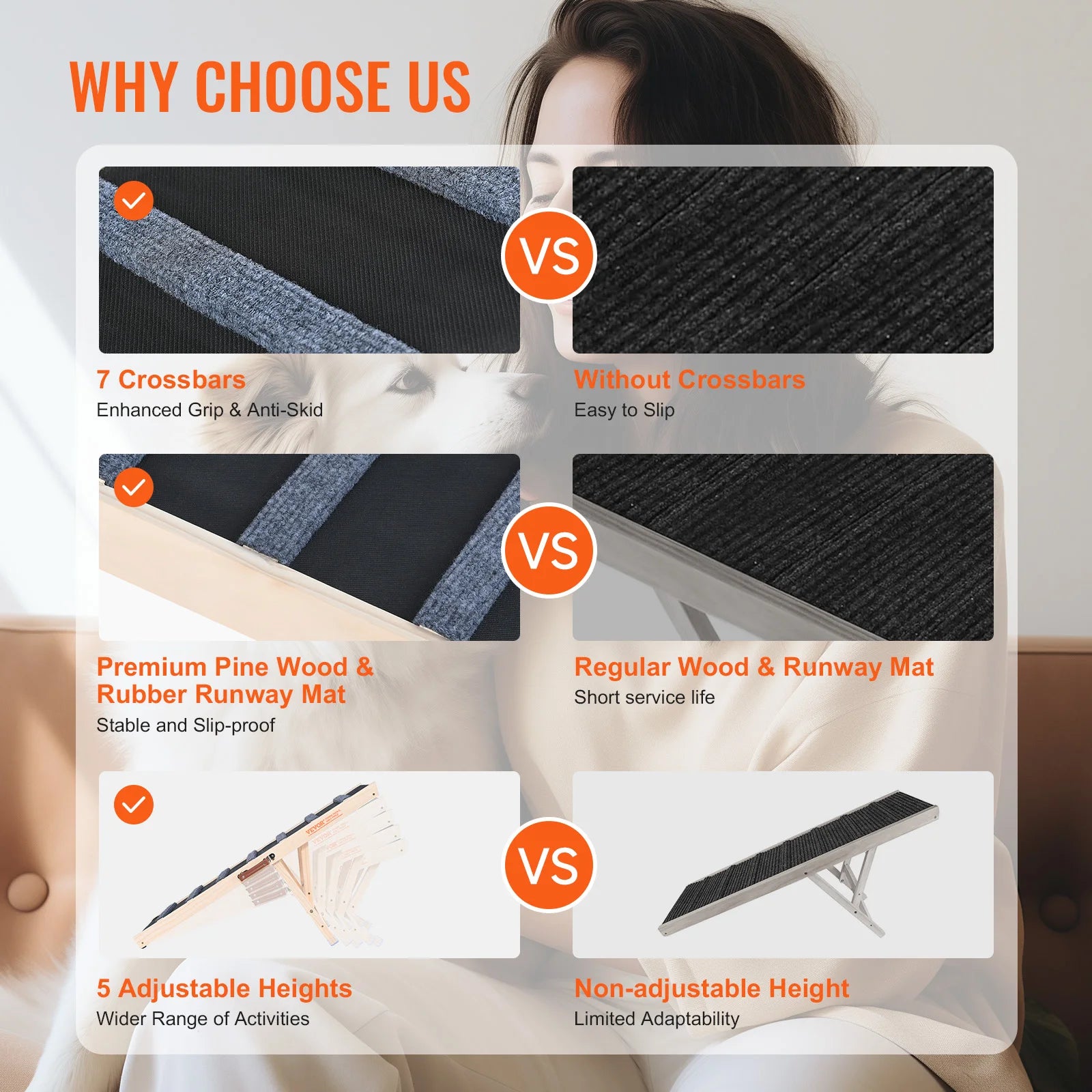 VEVOR Adjustable Dog Ramp Folding Anti-slip Wooden Pet Stairs for Small Old Dogs Easy Climbing Ramp for Sofa Car Bed