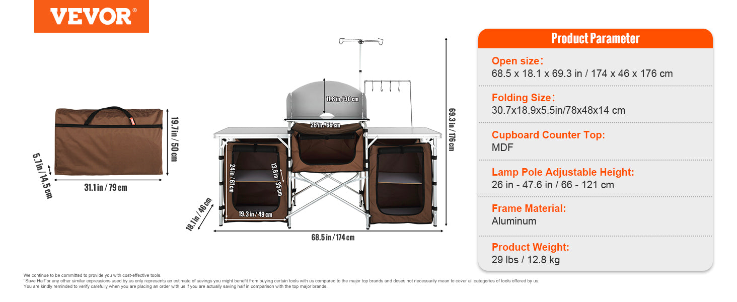 Marvel at its Quality: Our camping cooking table is built to last thanks to its aluminum tubes and a high-quality MDF countertop. The camp kitchen is designed with a reinforced X-shaped structure, which provides better stability and security during operation. And cleaning up is a breeze.