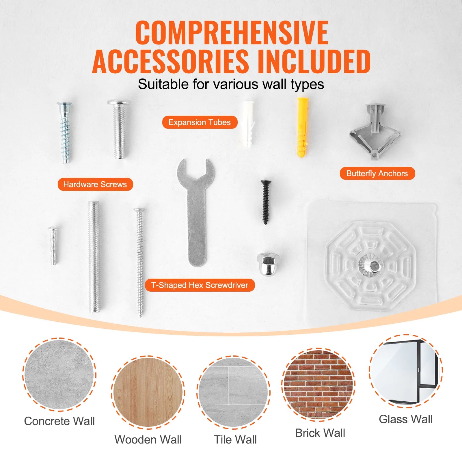 Installation is a breeze with included comprehensive accessories like metal screws, expansion tubes, and a detailed installation guide. Whether you’re mounting on drywall or concrete, our setup ensures a secure fit without hassle.