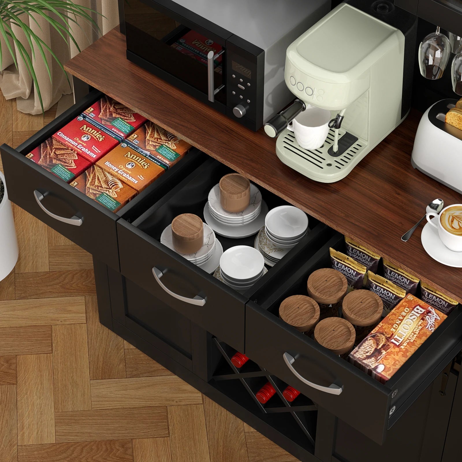 【MULTIFUNCTIONAL CABINET】This coffee bar cabinet size: 44.09"W x 15.75"D x 72.05"H. This cabinet is not only suitable for storing and displaying your wine collection, but also can be used as a kitchen pantry storage cabinet or buffet cabinet. Its multifunctional design makes it a great addition to any room in your home.