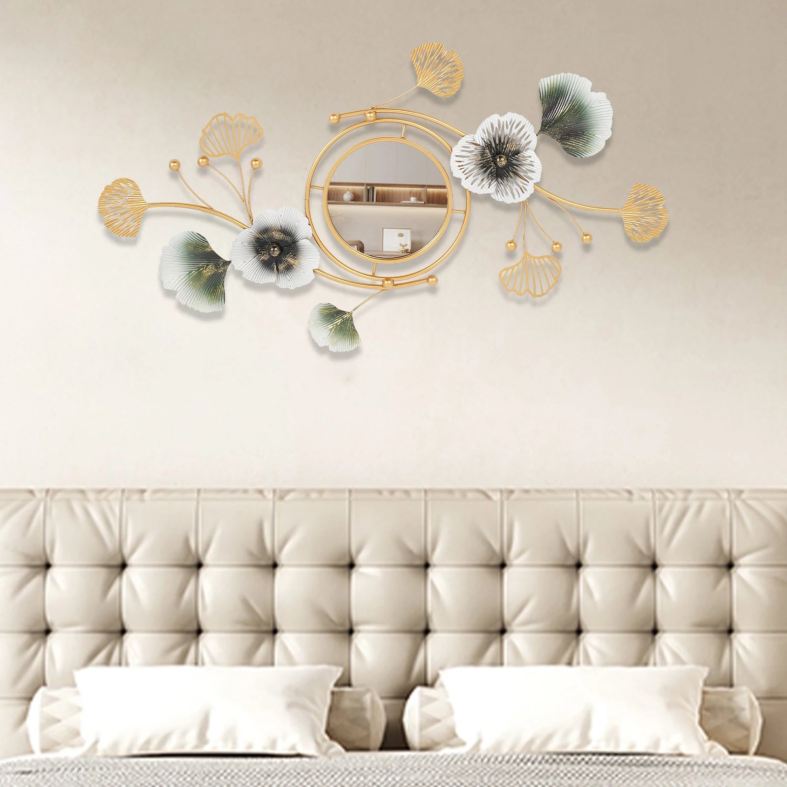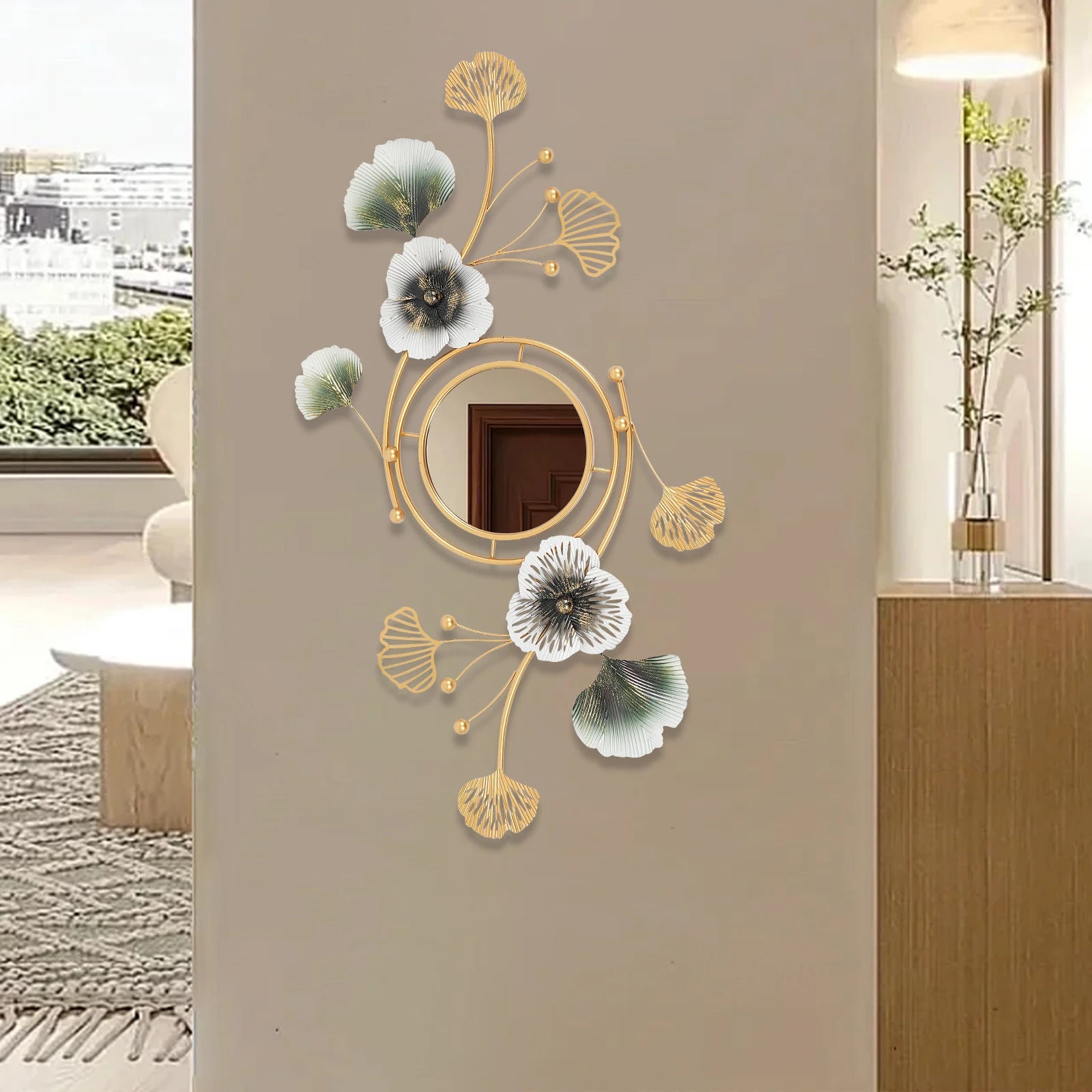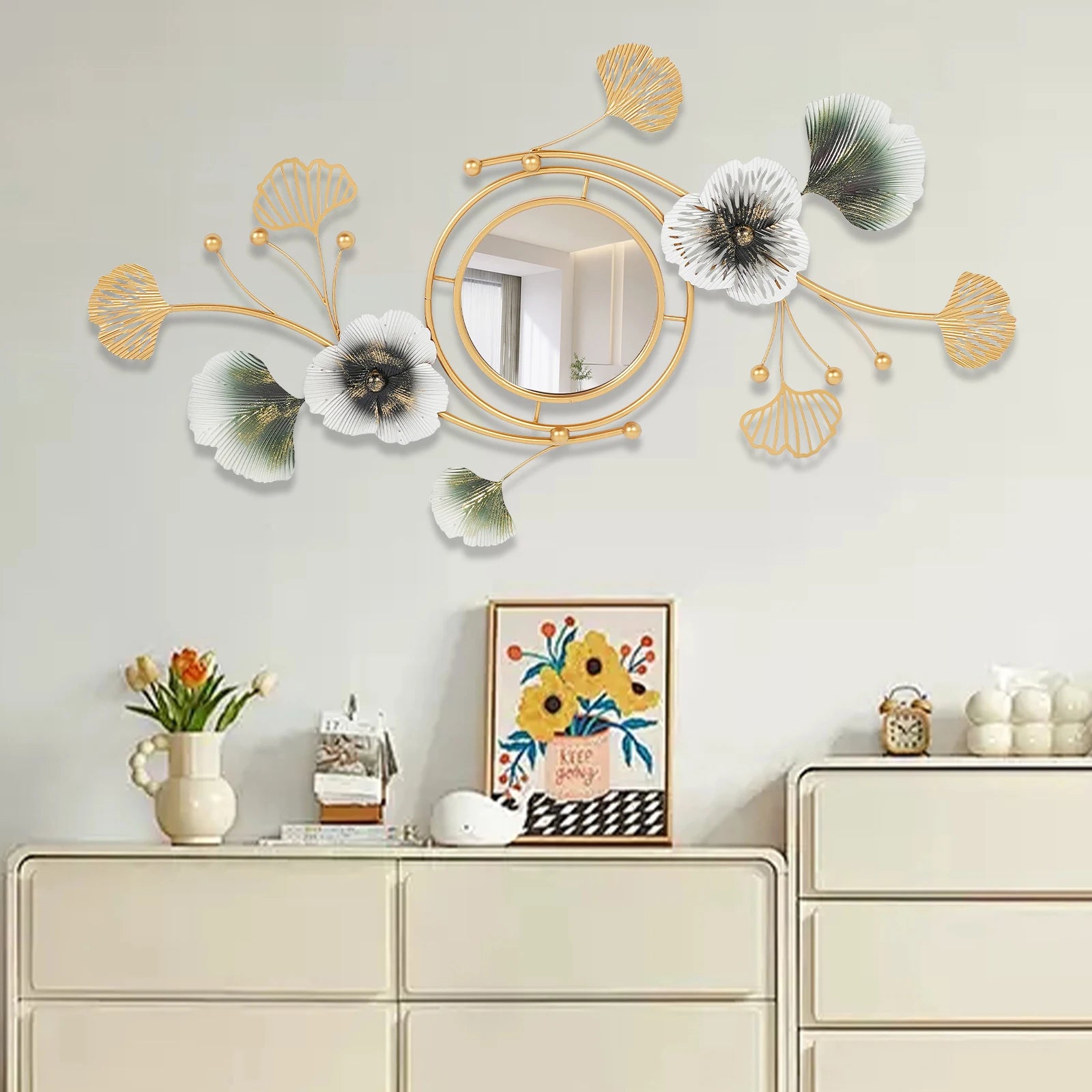 The elegant design features a central mirror surrounded by intricately crafted ginkgo leaves, adding a touch of sophistication and a three-dimensional effect to your walls. Its dimensions of 36.61 x 18.89 inches make it versatile for various spaces, whether it be your bathroom, living room, or hallway.