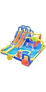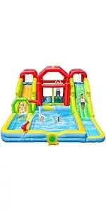 WELLFUNTIME Inflatable Water Slides Park with Blower, Bouncy Castle with Clim...